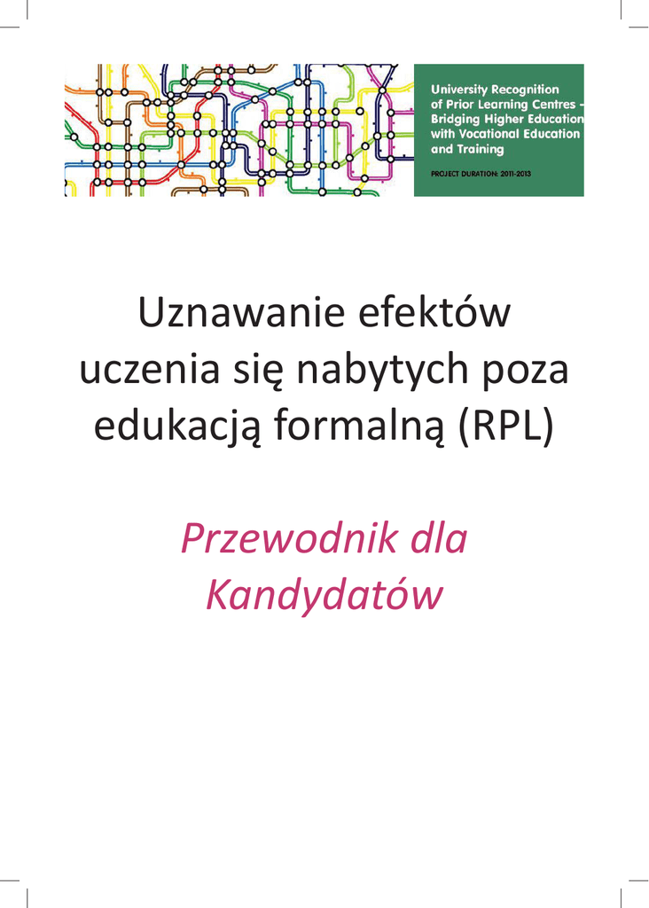 Uznawanie efektów uczenia się nabytych poza edukacją formalną (RPL) Przewodnik dla Kandydatów Opracowanie: Dr Beata Jałocha & Prof. dr hab. Grażyna Prawelska-Skrzypek (Uniwersytet Jagielloński) Niniejsza publikacja wydana jest na licencji Creative Commons: Uznanie autorstwa - Użycie niekomercyjne - Na tych samych warunkach 3.0 Polska Publikacja powstała w wyniku projektu „Uniwersyteckie Centra Uznawania Kwalifikacji – pomost pomiędzy szkolnictwem wyższym a kształceniem i szkoleniem zawodowym” zrealizowanego przy wsparciu finansowym Komisji Europejskiej w ramach programu „Uczenie się przez całe życie”. Publikacja odzwierciedla jedynie stanowisko autorów. Komisja Europejska ani Narodowa Agencja nie ponoszą odpowiedzialności za umieszczoną w niej zawartość merytoryczną ani za sposób wykorzystania zawartych w niej informacji. www.u-rpl.eu Kraków 2013 Spis treści WSTĘP – O PROJEKCIE URPL 5 CZYM JEST RPL? 6 WAŻNE DEFINICJE 8 EFEKTY UCZENIA SIĘ 8 WIEDZA 8 UMIEJĘTNOŚCI 8 KOMPETENCJE SPOŁECZNE 8 UCZENIE SIĘ FORMALNE 8 UCZENIE SIĘ NIEFORMALNE 8 UCZENIE SIĘ POZAFORMALNE 9 KWALIFIKACJA 9 EUROPEJSKI SYSTEM TRANSFERU I AKUMULACJI PUNKTÓW (ANG. EUROPEAN CREDIT TRANSFER AND ACCUMULATION SYSTEM, ECTS) 9 PUNKTY ECTS 9 ASESOR RPL 10 DORADCA RPL 10 KOORDYNATOR RPL 10 KOMITET RPL 10 POLSKA RAMA KWALIFIKACJI 11 MOŻLIWOŚCI UZYSKANIA POTWIERDZENIA EFEKTÓW UCZENIA SIĘ NABYTYCH POZA EDUKACJĄ FORMALNĄ 12 PROCEDURA RPL 13 PIĘĆ KROKÓW RPL 13 KROK 1: KONTAKT Z KOORDYNATOREM RPL. IDENTYFIKACJA OBSZARÓW 3 KSZTAŁCENIA 13 KROK 2: KONTAKT Z DORADCĄ RPL. IDENTYFIKACJA PRZEDMIOTÓW I/LUB PROGRAMÓW KSZTAŁCENIA 14 KROK 3: PRZYGOTOWANIE WNIOSKU RPL 15 KROK 4: OCENA WNIOSKU PROWADZONA PRZEZ ASESORA 16 KROK 5: DECYZJA DOTYCZĄCA WNIOSKU RPL 17 DIAGRAM PROCESU RPL 18 PROCEDURA ODWOŁAWCZA 19 RODZAJE I FORMY METOD OCENY 19 PRACA PROJEKTOWA 19 EGZAMIN USTNY 20 STANDARDOWA OCENA 20 SYMULACJA/OBSERWACJA PRAKTYKI 20 PORTFOLIO 20 PRZYGOTOWANIE PORTFOLIO 20 OCENA WNIOSKÓW RPL - WYTYCZNE, KTÓRYMI KIERUJĄ SIĘ ASESORZY 23 FINANSOWANIE PROCEDURY RPL 23 BIBLIOGRAFIA 24 ZAŁĄCZNIK 1: WNIOSEK RPL 25 ZAŁĄCZNIK 2: KARTA OCENY 30 4 Doradztwo Aplikacja Ocena Uznanie WSTĘP – O PROJEKCIE URPL Niniejszy przewodnik opracowany został w wyniku projektu „Uniwersyteckie Centra Uznawania Kwalifikacji – pomost pomiędzy szkolnictwem wyższym a kształceniem i szkoleniem zawodowym”, zrealizowanego w ramach programu Leonardo da Vinci Transfer Innowacji. Projekt został zrealizowany w latach 2011-2013 przez Uniwersytet Jagielloński, Universite Paris Est Creteil (Francja), Edinburgh Napier University (Wielka Brytania) oraz Ins tut za Rozvoj Obrazovanja (Chorwacja). Celem projektu był transfer innowacji - rozwiązań dotyczących uznawania efektów uczenia się nabytych poza edukacją formalną (ang. Recogni on of Prior Learning, RPL) - z krajów posiadających wieloletnią tradycję i dojrzałe systemy RPL (Francja, Wielka Brytania) do krajów rozpoczynających budowę rozwiązań w tym zakresie (Polska, Chorwacja). Przewodnik ma na celu pokazanie procesu uznawania efektów uczenia się uzyskanych poza formalną edukacją, realizowanego w uniwersytetach. Jego głównym adresatem są osoby zainteresowane uzyskaniem takiego potwierdzenia. 5 CZYM JEST RPL? RPL (Recogni on of Prior Learning), czyli uznawania efektów uczenia się nabytych poza edukacją formalną, jest procesem oceny i formalnego uznania efektów nieocenianego, niecertyfikowanego uprzednio uczenia się, które zostały osiągnięte podczas pracy zawodowej lub poprzez inne doświadczenia. RPL umożliwia bardziej elastyczne kształtowanie ścieżki kariery i ścieżki edukacyjnej, szybsze ukończenie studiów, daje szansę na samorealizację. Dzięki RPL osoby, które dotychczas – z różnych powodów - nie mogły kontynuować formalnej edukacji w uczelni, zyskują możliwość uwiarygodnienia posiadanych kwalifikacji i podniesienia swojej atrakcyjności na rynku pracy. Pracodawcy uzyskują bowiem informację o stopniu opanowania kwalifikacji poprzez odniesienie do standardów uniwersyteckich i Krajowej Ramy Kwalifikacji. O RPL mogą się ubiegać różne osoby, w tym: • dorośli wracający do nauki; • studenci, którzy chcą podnieść swoje dotychczasowe kwalifikacje; • osoby, które chcą się przekwalifikować lub zmienić ścieżkę kariery; • pracownicy, którzy podjęli naukę lub szkolenie w miejscu pracy; • ludzie, którzy zdobyli wiele umiejętności i wiedzy gdzie indziej np. poprzez wolontariat lub działalność na rzecz swojej społeczności; • reemigranci (powracający z zagranicy), imigranci, uchodźcy i osoby ubiegające się o azyl, które chcą potwierdzenia swoich kwalifikacji z innych krajów; • osoby niepełnosprawne, które uczyły się w trybie nieformalnym; • osoby, które uzyskały określone efekty wskutek uczenia się pozaformalnego (szkolenia, kursy) Osoby zainteresowane procedurą RPL (Kandydaci) po zgłoszeniu się do uczelnianego ośrodka przeprowadzającego procedury RPL zostaną poproszone o przedstawienie dowodów na to, że udało im się osiągnąć określone efekty uczenia się zarówno na poziomie programu, jak i dla poszczególnych przedmiotów, w ramach których chcą ubiegać się o uznanie. RPL wymaga, żeby Kandydaci pokazali, jakie określone efekty uczenia się już osiągnęli. Koordynatorzy i Doradcy 6 RPL pomogą Kandydatom zidentyfikować efekty uczenia się i przygotować się do oceny ich wniosku o efektów uczenia się nabytych poza edukacją formalną. RPL nie dotyczy bowiem uznawania samego procesu uczenia się, ale konkretnych efektów tego procesu. Nie jest dlatego istotne w jakim kontekście uczenie się miało miejsce – ważne jest, czego dany człowiek się nauczył. 7 WAŻNE DEFINICJE EFEKTY UCZENIA SIĘ Efekty uczenia się oznaczają określenie tego, co uczący się wie, rozumie i potrafi wykonać po ukończeniu procesu uczenia się, któ