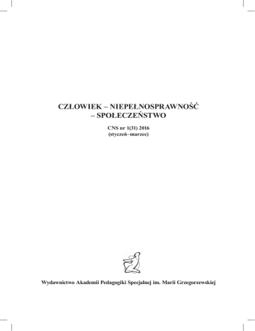 CZŁOWIEK – NIEPEŁNOSPRAWNOŚĆ – SPOŁECZEŃSTWO CNS nr 1(31) 2016 (styczeń–marzec) Wydawnictwo Akademii Pedagogiki Specjalnej im. Marii Grzegorzewskiej RADA NAUKOWA Anna Firkowska-Mankiewicz (przewodnicząca) (PL), Adam Frączek (PL), Matthew Janicki (USA), Zofia Kawczyńska-Butrym (PL), Małgorzata Kościelska (PL), Henny Lantman (B), Su-Jan Lin (TW), Hanna Malewska-Peyre (F), Tadeusz Mazurczak (PL), Antonina Ostrowska (PL), Alicja Przyłuska-Fiszer (PL), Diane Ryndak (USA), Renata Siemieńska-Żochowska (PL), Barbara Szatur-Jaworska (PL), Wiesław Theiss (PL) KOMITET REDAKCYJNY Joanna Głodkowska (redaktor naczelna, PL), Danuta Gorajewska (z-ca redaktor naczelnej, PL), Ewa M. Kulesza, Małgorzata Kupisiewicz, Barbara Marcinkowska, Jarosław Rola (członkowie redakcji, PL) REDAKTORZY TEMATYCZNI Józefa Bałachowicz – pedagogika (PL) Paweł Boryszewski – socjologia (PL) Helena Ciążela – filozofia (PL) Czesław Czabała – psychologia (PL) Urszula Eckert – pedagogika specjalna (PL) Henryk Skarżyński – medycyna (PL) Redaktor merytoryczny – Danuta Gorajewska (PL) Redaktor językowy (język polski) – Weronika Kostecka (PL) Redaktor statystyczny – Adam Tarnowski (PL) Tłumaczenie na język angielski – Renata Wójtowicz (PL) Wersja papierowa jest wersją pierwotną (referencyjną) Kwartalnik posiada punktację MNiSW – 10 punktów w kategorii B Instytucja finansująca: Akademia Pedagogiki Specjalnej im. Marii Grzegorzewskiej CNS jest indeksowany w: CEJSH, ERIH PLUS, IC Journal Master List i WCOSJ © Copyright by Wydawnictwo Akademii Pedagogiki Specjalnej im. Marii Grzegorzewskiej Warszawa 2016 nakład 200 egz. ISSN 1734-5537 SPIS TREŚCI CNS numer 1(31) 2016 Artykuły i rozprawy Michael Rembis, Natalia Pamuła – Disability Studies: A View from the Humanities . . Monika Skura – Dialogiczny sposób bycia w filozofii Martina Bubera – koncepcja bliska pedagogicznym wyzwaniom? . . . . . . . . . . . . . . . . . . . . . . . . . . . . . . . . . . . . . . . Iwona Omelańczuk, Ewa Pisula – Temperament u dzieci z zaburzeniami ze spektrum autyzmu . . . . . . . . . . . . . . . . . . . . . . . . . . . . . . . . . . . . . . . . . . . . . . . . . . . . . . . . . . . . . Kasper Sipowicz, Edyta Najbert, Tadeusz Pietras – Dogoterapia jako forma wsparcia osób z niepełnosprawnością . . . . . . . . . . . . . . . . . . . . . . . . . . . . . . . . . . . . . . . . . . . . . Katarzyna Biel-Ziółek – Wieloaspektowa rehabilitacja jako szansa poprawy jakości życia osób niepełnosprawnych ruchowo . . . . . . . . . . . . . . . . . . . . . . . . . . . . . . . . . . . Maria Trzcińska-Król, Barbara Pilipczuk – Nowe media w komunikacji szkoła–dom. Doniesienia z badań . . . . . . . . . . . . . . . . . . . . . . . . . . . . . . . . . . . . . . . . . . . . . . . . . . . 5 25 39 51 65 85 Recenzje i polemiki Nick Bouras, Geraldine Holt (red.). (2015). Zaburzenia psychiczne i zaburzenia zachowania u osób niepełnosprawnych intelektualnie. Wrocław: Elsevier Urban & Partner (Jarosław Rola) . . . . . . . . . . . . . . . . . . . . . . . . . . . . . . . . . . . . . . . . . . . . . . . . . Annette Textor (2015). Einführung in die Inklusionspädagogik. Współpr. Daniela Niestrad, Benjamin Filitz, Jessica Matis, Aukje Rüting, Hannah Zingler. Bad Heilbrunn: Verlag Julius Klinkhardt (Dorota Kornas-Biela) . . . . . . . . . . . . . . . . . . . . 113 119 Sprawozdania, komunikaty, kronika Małgorzata Janiaczyk – Sprawozdanie z I Ogólnopolskiej Konferencji Naukowej „Osoby z niepełnosprawnością w sporcie – teoria i praktyka”, Katowice, 26 czerwca 2015 . . . . . . . . . . . . . . . . . . . . . . . . . . . . . . . . . . . . . . . . . . . . . . . . . . . . . . . . . . . . . . . . 125 Kornelia Czerwińska, Iwona Konieczna – Sprawozdanie z I Ogólnopolskiej Konferencji Naukowej „Wrocławskie Spotkania Pedagogów Specjalnych” – „Wyzwania emancypacyjne w przestrzeni edukacyjnej i pomocowej”, Wrocław, 15–16 września 2015 . . . . . . . . . . . . . . . . . . . . . . . . . . . . . . . . . . . . . . . . . . . . . . . . . . . . . . . . . 131 Przegląd czasopism Kasper Sipowicz, Edyta Najbert, Tadeusz Pietras – Empirische Sonderpädagogik, 2015, 1. 7, z. 1–4 . . . . . . . . . . . . . . . . . . . . . . . . . . . . . . . . . . . . . . . . . . . . . . . . . . . . . . 139 TABLE OF CONTENTS CNS No. 1(31) 2016 Articles and Treaties Michael Rembis, Natalia Pamuła – Disability Studies: A View from the Humanities . . Monika Skura – Dialogical lifestyle in the philosophy of Martin Buber – A concept close to pedagogic challenges? . . . . . . . . . . . . . . . . . . . . . . . . . . . . . . . . . . . . . . . . . . . Iwona Omelańczuk, Ewa Pisula – Temperament of children with autism spectrum disorders . . . . . . . . . . . . . . . . . . . . . . . . . . . . . . . . . . . . . . . . . . . . . . . . . . . . . . . . . . . . Kasper Sipowicz, Edyta Najbert, Tadeusz Pietras – Dog therapy as a form of support for people with disabilities . . . . . . . . . . . . . . . . . . . . . . . . . . . . . . . . . . . . . . . . . . . . . . Katarzyna Biel-Ziółek – Multifaceted rehabilitation as a chance to improve the quality of life of people with motor disabilities . . . . . . . . . . . . . . . . . . . . . . . . . . . . . . . . . . . . . Maria Trzcińska-Król, Barbara Pilipczuk – New media in school-home communication. A research report . . . . . . . . . . . . . . . . . . . . . . . . . . . . . . . . . . . . . . . . . . . . . . . . . . . . . . 5 25 39 51 65 85 Polemics and Reviews Nick Bouras, Geraldine Holt (Eds.). (2015). Zaburzenia psychiczne i zaburzenia zachowania u osób niepełnosprawnych intelektualnie (Original title: Psychiatric and behavioral disorders in intellectual and developmental disabilities). Wrocław: Elsevier Urban & Partner (Jarosław Rola) . . . . . . . . . . . . . . . . . . . . . . . . . . . . . . . . . . Annette Textor (2015). Einführung in die Inklusions