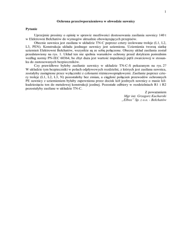 1 Ochrona przeciwporażeniowa w obwodzie suwnicy Pytanie Uprzejmie prosimy o opinię w sprawie możliwości dostosowania zasilania suwnicy 140 t w Elektrowni Bełchatów do wymogów aktualnie obowiązujących przepisów. Obecnie suwnica jest zasilana w układzie TN-C poprzez cztery izolowane troleje (L1, L2, L3, PEN). Konstrukcja układu jezdnego suwnicy jest uziemiona. Uziemienia tworzą siatkę uziemień Elektrowni Bełchatów, wszystkie są ze sobą połączone. Obecny układ zasilania został przedstawiony na rys. 1. Układ ten nie spełnia warunków ochrony przed dotykiem pośrednim według normy PN-IEC 60364, bo zbyt duża jest wartość impedancji pętli zwarciowej w stosunku do zastosowanych bezpieczników. Czy prawidłowe byłoby zasilanie suwnicy w układzie TN-C-S pokazanym na rys. 2? W układzie tym bezpieczniki w polach odpływowych rozdzielni, z których jest zasilana suwnica, zostałyby zastąpione przez wyłączniki z członami różnicowoprądowymi. Zasilanie poprzez cztery troleje (L1, L2, L3, N) pozostałoby bez zmian, a ciągłość połączeń przewodów ochronnych PE suwnicy z uziemieniem byłaby zapewniona przez docisk kół jezdnych suwnicy o masie kilkudziesięciu ton do metalowej konstrukcji jezdnej. Pozostałe odbiory w rozdzielniach R1 i R2 pozostałyby zasilane w układzie TN-C. Z poważaniem Mgr inż. Grzegorz Kucharski „Elbox” Sp. z o.o. - Bełchatów 2 3 Odpowiedź Dodatkowe informacje przesłane w ślad za pytaniem wskazują, że chodzi o zasilanie trzech suwnic Q-140/32 t w budynku głównym elektrowni. Podczas okresowych badań stanu ochrony przeciwporażeniowej niepokój wzbudziły wyniki pomiarów w czterech spośród jedenastu punktów pomiarowych: przy zasilaniu z obwodu zabezpieczonego bezpiecznikiem stacyjnym 200 A w jednym miejscu zmierzono impedancję pętli 0,167 Ω, co odpowiada prądowi zwarciowemu 1317 A, a prąd wyłączający bezpiecznika (w czasie 5 s) oceniono na 1440 A (krotność 7,2), przy zasilaniu z obwodu zabezpieczonego bezpiecznikiem stacyjnym 315 A w trzech miejscach uzyskano wyniki za duże, od 0,117 do 0,165 Ω, co odpowiada prądowi zwarciowemu od 1880 do 1333 A, a prąd wyłączający bezpiecznika (w czasie 5 s) oceniono na 2431 A (krotność 7,7). Pomiar tak małych wartości impedancji pętli zwarciowej wymaga użycia specjalnego miernika i wymaga szczególnej rozwagi, bo jest podatny na różne czynniki zakłócające. Słusznie wybrano m.in. miernik MR-1 pomysłu R. Roskosza. Poprawnie wykonywany pomiar impedancji pętli w najlepszym razie odbywa się z błędem ±10 %; co najmniej z podobnym błędem określa się prąd wyłączający bezpieczników. Niestosowne jest zatem zapisywanie w protokóle wartości prądów zwarciowych i prądów wyłączających w postaci czterech cyfr znaczących, co sugeruje dokładność rzędu 0,1 %. Nie jest pewna już trzecia z podawanych cyfr, a w niektórych przypadkach nawet druga. Zasilanie 140-tonowej suwnicy przez układ ochronny różnicowoprądowy nie jest pomysłem szczęśliwym. Podobne pomysły wprowadzania wyłączników różnicowoprądowych w miejscach najmniej odpowiednich, również w obwodach suwnic, były już wcześniej rozpowszechniane (np. w zeszycie 11/1996 Wiadomości Elektrotechnicznych). Po wdrożeniu okazuje się na ogół, że częste zbędne wyłączenia przez człon różnicowoprądowy są nie do zniesienia w eksploatacji i z pomysłu trzeba się wycofać, ale o tym już nigdzie się nie pisze. Suwnice, o które chodzi, zbudowane i oddane do użytku dawno temu, są zasilane z sieci elektroenergetycznej typu przemysłowego o układzie TN-C i zostały objęte ochroną przeciwporażeniową dodatkową przez zerowanie. Jeżeli te suwnice, nie były poddawane przebudowie lub modernizacji po roku 1992, to nie dotyczą ich wymagania normy PN-92/E-05009/41 z roku 1992 i tym bardziej – normy PN-IEC 60364-4-41 z roku 2000. Obowiązuje zasada „ochrony zastanej” (niem. Bestandschutz) i podczas okresowych badań ochrony przeciwporażeniowej wolno stosować przepisy z okresu instalowania suwnic i przekazania ich do eksploatacji. Jeżeli ochrona uprzednio została uznana za zadowalającą i nie wystąpiły rażące zaniedbania bądź uszkodzenia, czego przecież nie stwierdzono, to nadal może być uważana za ochronę wystarczającą. Jeżeli natomiast po roku 1992 nastąpiła przebudowa bądź modernizacja którejkolwiek suwnicy, to podlega ona wymaganiom nowych przepisów. Wprowadzony podczas projektowania i budowy suwnicy sposób ochrony zerowanie występuje w nowych przepisach i nadal jest stosowany, ale obecnie nazywa się następująco: ochrona przed dotykiem pośrednim poprzez (wg 413.1.3.3) samoczynne wyłączanie zasilania w układzie TN przez zabezpieczenie nadprądowe i/lub (wg 413.1.3.6) poprzez ograniczenie napięcia dotykowego do wartości dopuszczalnej − za pomocą dodatkowych połączeń wyrównawczych − w obwodach, w których zapewnienie samoczynnego wyłączenia zasilania nie jest możliwe (por. Biuletyn INPE nr 19 – czerwiec 1998 r., s. 27). Bezmyślne forsowanie mało logicznego skrótu myślowego ochrona za pomocą samoczynnego wyłączenia zasilania i maniakalne, kłamliwe, uporczywe wmawianie na różnych szkoleniach, że wyłączenie zasilania powinno zawsze następować w określonym, krótkim czasie, kolejny raz doprowadziło do nieporozumień, do konkluzji w protokóle sprawdzenia ochrony prze- 4 ciwporażeniowej, że „ochrona przeciwporażeniowa przed dotykiem pośrednim nie jest skuteczna …” i do pomysłu wprowadzenia wyłączników z członem różnicowoprądowym. Tymczasem samoczynne wyłączenie zasilania nie jest wymagane, jeżeli napięcia dotykowe występujące długotrwale w następstwie zwarcia doziemnego L-PE (L-PEN) nie przekraczają największej dopuszczalnej długotrwale wartości. Kto tego nie rozumie, nie powinien być dopuszczony do wykonywania pomiarów i do wydawania orzeczeń o stanie ochrony. Z treści py