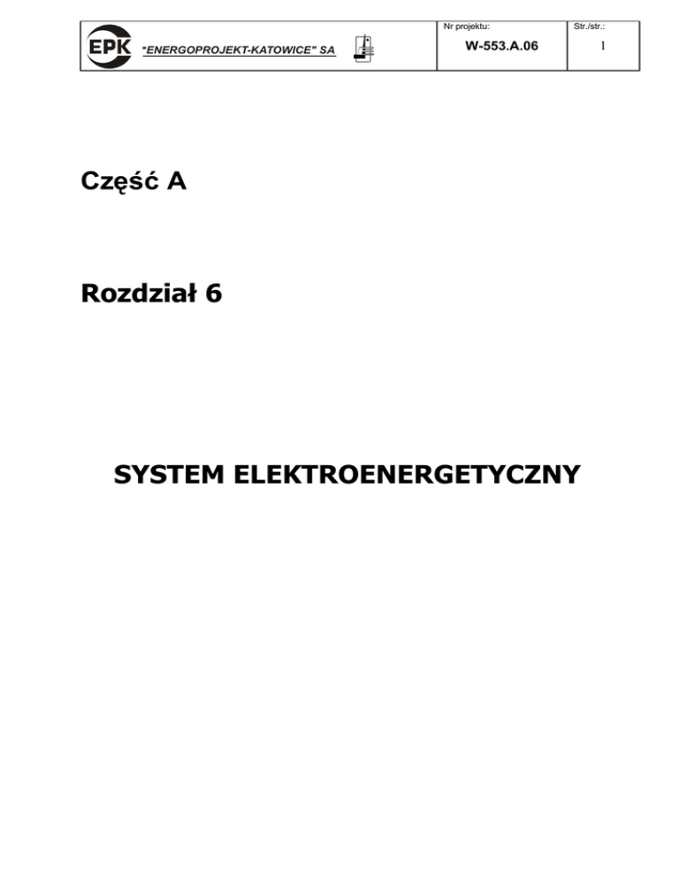 Część A Rozdział 6 SYSTEM ELEKTROENERGETYCZNY