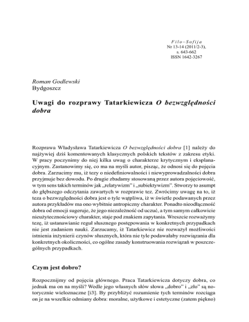 Uwagi do rozprawy Tatarkiewicza O bezwzględności dobra