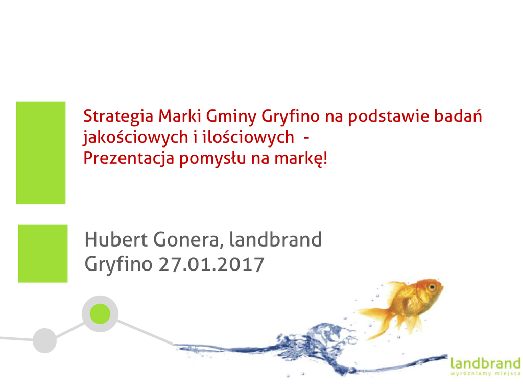 Strategia Marki Gminy Gryfino na podstawie badań jakościowych i ilościowych Prezentacja pomysłu na markę! Hubert Gonera, landbrand Gryfino 27.01.2017 Agenda Prezentacji Nakreślenie sytuacji wyjściowej Wskazanie pomysłu na markę Wybrane działania budujące markę 2 GRYFINO – STRATEGIA MARKI GMINY Nakreślenie sytuacji wyjściowej – przełomowy moment „Jednym z podstawowych wniosków, jakie przynosi część analityczna dokumentu, jest specyficzny moment w cyklu rozwojowym w jakim znajduje się miasto i gmina Gryfino. Można ten moment nazwać przełomowym. Jest on kluczowy dla rozwoju miasta”. 3 GRYFINO – STRATEGIA MARKI GMINY Nakreślenie sytuacji wyjściowej – konieczna komunikacja Odpowiednia komunikacja z mieszkańcami miasta i gminy przede wszystkim, a także Szczecina i gmin południowych to klucz dla postrzegania atrakcyjności marki Gryfino. 4 GRYFINO – STRATEGIA MARKI GMINY Nakreślenie sytuacji wyjściowej – konieczna komunikacja Zdaje się, że mieszkańcy jak również najbliższe otoczenie marki nie posiadają wiedzy nt. zmian jakie już obecnie zaszły w realiach funkcjonowania miasta i gminy oraz jakie nastąpić mają w najbliższej przyszłości. Dotyczą one zarówno sfery gospodarczej, turystycznej jak i atrakcyjności mieszkaniowej 5 GRYFINO – STRATEGIA MARKI GMINY przekonanie włączenie zaintereso wanie współuczestni czenie NOWA INFORMACJA Rozwój i inicjatywa STAN WYJŚCIOWY STAGNACJA Wiele lat stagnacji Marazm Brak wiary i poczucia wspólnoty 6 GRYFINO – STRATEGIA MARKI GMINY STAN DOCELOWY ENERGIA Wskazanie pomysłu na markę - plan działania w strategii marki Wskazanie pomysłu na markę - tożsamość marki 30% 26% 25% 20% 20% 19% 15% 10% 10% 5% 9% 7% 3% 2% 2% 1% 0% Musimy dać odbiorcom coś co uznają za swoje / prawdziwe – ale jednocześnie zaskoczyć ich i zaangażować! 7 GRYFINO – STRATEGIA MARKI GMINY Wskazanie pomysłu na markę - BIG IDEA 8 Gryfino – Energia Międzyodrza GRYFINO – STRATEGIA MARKI GMINY Gryfino – Energia Międzyodrza DLACZEGO ENERGIA: 9 Pozytywne powiązanie z Elektrownią Dolna Odra Konieczna żeby zaangażować ludzi Bardzo dobrze oddaje zmiany zachodzące w Gryfinie Ukaże możliwość odniesienia sukcesu Stanie się wyróżnikiem miejsca (tak jak woda Szczecina) GRYFINO – STRATEGIA MARKI GMINY Gryfino – Energia Międzyodrza DLACZEGO MIĘDZYODRZE: 10 Pozwoli przypisać Gryfinu miejsce na mapie (nie będzie myliło się z Gryficami) Jest synonimem granicy – nowej granicy, rozumianej jako centrum nie peryferia Jest nowym nieodkrytym obszarem, który będzie modnym w następnych latach – pozwoli stworzyć produkty turystyczne Jest wspólne dla Polski i Niemiec – pozwoli otworzyć bramy współpracy Gryfino będzie liderem współpracy na tym obszarze GRYFINO – STRATEGIA MARKI GMINY Misja marki: Gryfino to małe miasto dające wielkomiejski potencjał. Doskonale wykorzystujące fakt granicznego położenia. Aktywnie współtworzone przez mieszkańców i otwarte na turystów. Miejsce kreacji, synergii, wyjątkowej jakości życia. Bez kompleksów. Gdyż to co robi, stara się robić doskonale. 11 GRYFINO – STRATEGIA MARKI GMINY Cel marki: Zaoferowanie kompaktowej, przyjaznej przestrzeni dla obecnych i przyszłych mieszkańców, turystów i inwestorów. Wykorzystującej metropolitarne położenie, zjawiskową naturę i atuty jakie daje granica. 12 GRYFINO – STRATEGIA MARKI GMINY Wartości marki Energia natury – nurt Odry, rozlewiska, dzikie tereny, Energia społeczna – napędza pasjonatów, twórców, sportowców, poszczególne jednostki jak i kolektywy do działania. Sprawia że narody spotykają się, a jednostki podróżują po świecie Energia gospodarcza – każe mądrze ryzykować, rozwijać się i współpracować, budując nowe miejsca pracy 13 GRYFINO – STRATEGIA MARKI GMINY Wartości marki 14 Kreatywność – towarzyszy twórcom z Gryfina z wielu dziedzin sztuk, każe widzieć świat inaczej, stwarzać nową jakość Towarzyskość – chęć współpracy, dzielenia się z innymi chwilami, wydarzeniami, ulubionymi miejscami Ambicja – chęć mierzenia się z największymi wyzwaniami, stawiania sobie niecodziennych celów Odwaga – śmiałość we wprowadzaniu zmian, walki z utartymi schematami Zaufanie – wiarę w innych i we własne siły, niezbędną cechę, aby pojawił się sukces Konsekwencja – upór do doskonalenia się, chęć do ponoszenia wysiłku Chęć przekraczania granic – tych fizycznych jak i psychicznych, odkrywania nowych możliwości GRYFINO – STRATEGIA MARKI GMINY Hasła przewodnie marki Wyzwalamy energię! Jesteśmy wrotami Międzyodrza ! 15 GRYFINO – STRATEGIA MARKI GMINY Działania budujące markę Elektrownia Dolna Odra – bardzo silnie kojarzona z Gryfinem. Ponad ¼ respondentów wskazała ją na pierwszym miejscu Pomysły na wykorzystanie w marce: Sentyment mieszkańców Dni energetyka, Dni energii – niegdyś najważniejsza impreza na terenie gminy. Możliwość rozwoju w nowe wydarzenie pod nazwą np. Dni Energii tworzone wspólnie z Elektrownią w ramach działań CSR – Corporate Social Responsibility – społecznej odpowiedzialności biznesu. Energia i człowiek – ukazanie zależności rozwoju człowieka i rozwoju form pozyskiwania energii. Możliwość stworzenia nowoczesnej ekspozycji interaktywnej o sposobach pozyskiwania energii od spalania, przez energię wody, solarną, geotermalną. 16 GRYFINO – STRATEGIA MARKI GMINY Działania budujące markę Odra – z rzeką wiązało się co piąte wskazanie dotyczące tożsamości miasta Stworzenie muzeum Dolnej Odry Rejsy wycieczkowe po Odrze 17 GRYFINO – STRATEGIA MARKI GMINY Działania budujące markę Festiwal Włóczykij – 10% mieszkańców wskazało to wydarzenie jako skojarzenie z Gryfinem Miasto Włóczykija – możliwość zdyskontowania atrakcyjności festiwalu przez cały rok w ofercie kulturalnej miasta oraz przestrzeni miejskiej. Na przykład: Klub Włó
