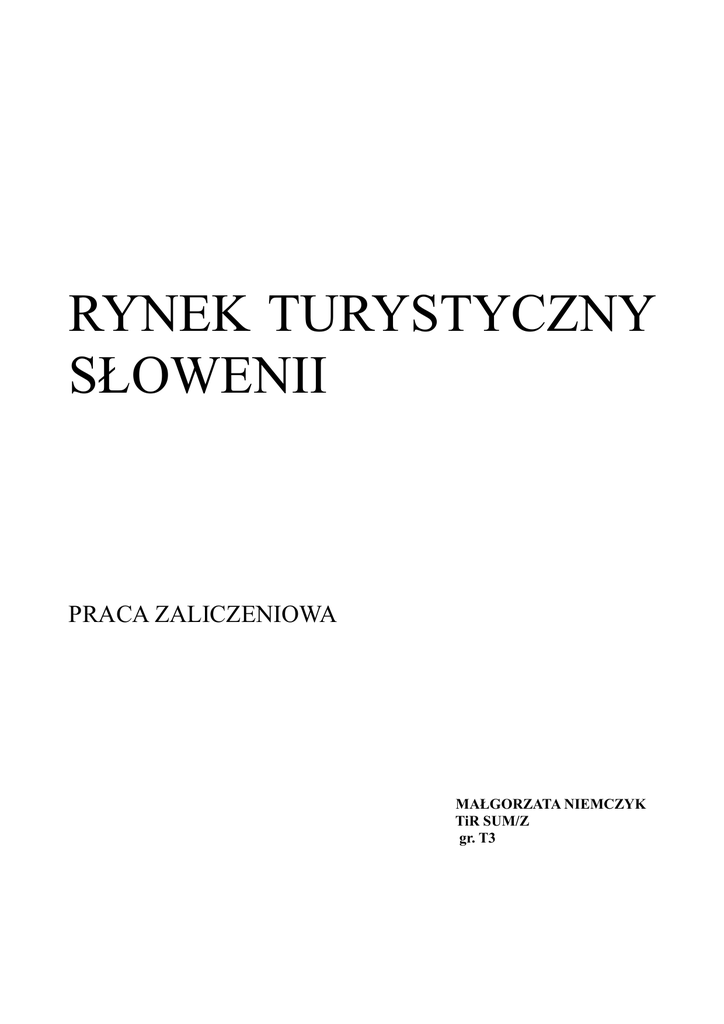 rynek turystyczny słowenii - Wydział Turystyki i Rekreacji