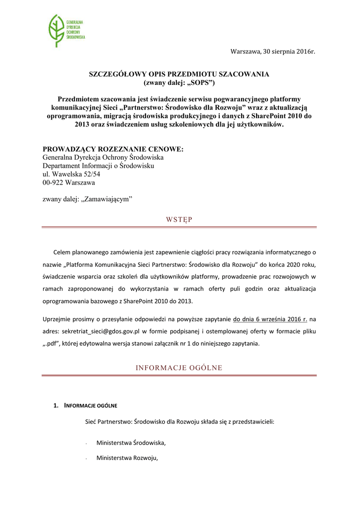 Rozpoznanie cenowe - bip generalnej dyrekcji ochrony środowiska