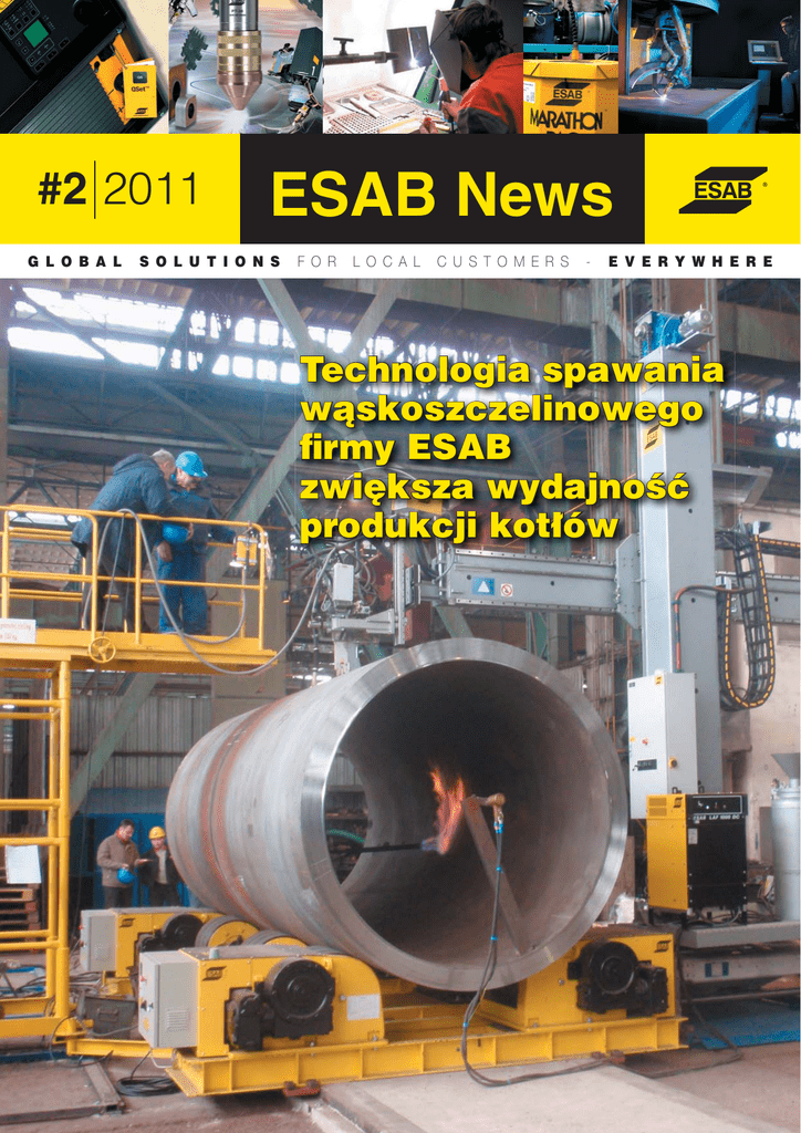 #2 2011 G L O B A L ESAB News S O L U T I O N S F O R L O C A L C U S T O M E R S - E V E R Y W H E R E Technologia spawania wąskoszczelinowego firmy ESAB zwiększa wydajność produkcji kotłów 2 ESAB News 2 2011 Od redakcji #2 2011 ESAB News Wydawca: ESAB POLSKA Sp. z o.o., ul. Chorzowska 108, 40 –101 Katowice Szanowni Państwo, Mijający rok zapisuje się w historii firmy ESAB jako czas ważnych zmian. Spośród wielu realizowanych projektów, największe znaczenie dla uczestników procesu produkcji i dystrybucji naszych wyrobów ma projekt Star. Prowadzony intensywnie od kilkunastu miesięcy, przyniósł istotne zmiany w europejskim „łańcuchu dostaw”, w znaczący Zespół redakcyjny: Ryszard Urbowicz, Michał Kozłowski, Leszek Gajówka, Jacek Windyś, Daniel Wiśniowski, Jan Chrzanowski, Robert Lazik, Marek Molędys, Dariusz Wojtaszewski - redaktor naczelny sposób usprawniając realizację zamówień. Zastąpienie 17 magazynów poprzez tylko trzy centra dystrybucyjne i utworzenie zintegrowanego systemu zarządzania nimi zaczyna przynosić oczekiwane korzyści. Czas dostawy wielu artykułów, zwłaszcza Dystrybucja: Ewa Wolany, tel. (32) 35 11 105, fax (32) 35 11 120 materiałów dodatkowych, uległ skróceniu. Dokładniejsze jest planowanie zapasów magazynowych, bardziej precyzyjne są informacje o dostępności produktów - co stwarza szansę na jeszcze lepszą obsługę wszystkich klientów. Ujednolicone usługi transportowe, pozwalają na zmniejszenie kosztów. Firma ESAB prowadzi stałą kontrolę kosztów we wszystkich segmentach swojej działalności. Szczegółowa analiza kosztów, przeprowadzona na wydziale elektrod zakładu ESAB w Katowicach, wskazała na konieczność przeniesienia produkcji głównych, najbardziej popularnych na naszym rynku gatunków elektrod do innych e-mail: [email protected] Skład i druk: UNIPRINT, Rychnov nad Kneznou, Republika Czeska © ESAB 2011 All rights reserved jednostek, o niższym poziomie kosztów wytwarzania i nowocześniejszym parku maszyn. Pozostałe gatunki dawnej marki Baildon, które mają swoje odpowiedniki wśród oryginalnych produktów ESAB, zostaną wycofane z oferty. Katowicka fabryka będzie w dalszym ciągu prowadzić i rozwijać produkcję drutów rdzeniowych oraz topników aglomerowanych, które od wielu lat są jej specjalnością. W ten sposób, 78-letnia tradycja produkcji materiałów spawalniczych w tym miejscu będzie kontynuowana w unowocześnionej formie. Całokształt światowej działalności firmy ESAB został niedawno uhonorowany prestiżowymi nagrodami organizacji Frost & Sullivan za „Najlepsze praktyki” oraz „Doskonałość w globalizacji” - a ściślej, za osiągnięcie wiodącej pozycji na rynku, wypracowanie zaufanej marki oraz skutecznych strategii obsługi klienta. Więcej informacji na ten temat zamieściliśmy na naszej stronie internetowej. Nagrody zobowiązują, więc w bieżącym wydaniu naszego magazynu dominują nowoczesne technologie, urządzenia i materiały. Przykład wdrażania technologii spawania wąskoszczelinowego może zainspirować do podobnych zmian również w Państwa środowisku. Stawiamy tezę, że bez wysokiej jakości i wiedzy oraz odpowiednich urządzeń trudno jest skutecznie korzystać z takich materiałów jak aluminium, czy stal nierdzewna. Dowody na jej poparcie znajdziemy w kolejnych artykułach. Jeżeli nie udało się Państwu odwiedzić naszego objazdowego centrum wystawowego - to może nadarzy się taka okazja w przyszłym roku. Na razie podsumowujemy tegoroczną podróż, w której uczestniczył nasz Demo Bus - i jak zwykle, zapraszamy ESAB POLSKA Sp. z o.o. do lektury. ul. Chorzowska 108 Z okazji Świąt Bożego Narodzenia oraz Nowego Roku w imieniu całego zespołu 40 –101 KATOWICE redakcyjnego składam Państwu serdeczne życzenia zdrowia i wszelkiej pomyślności. tel.: +48 32 3511 100 fax: +48 32 3511 120 Ryszard Urbowicz e-mail: [email protected] ESAB News 2 2011 Spis treści Technologia spawania wąskoszczelinowego firmy ESAB zwiększa wydajność produkcji kotłów str. 4 - 6 Materiały odporne na korozję str. 7 Technologia spawania wąskoszczelinowego firmy ESAB... str. 4 - 6 Spawanie aluminium - potrzebna jakość i wiedza str. 8 - 10 Spawanie stali stopowych i aluminium urządzeniami ESAB str. 11 - 13 Demobus Tour 2011 Show Spawalniczy z firmą ESAB str. 14 Aristo® Tech str. 15 Spawanie aluminium - potrzebna jakość i wiedza Demobus Tour 2011 strony 8 - 10 strona 14 3 4 ESAB News 2 2011 Technologia spawania wąskoszczelinowego firmy ESAB zwiększa wydajność produkcji kotłów Autorzy: Daniel Stano, SES a.s. Tlmače, Słowacja i Juraj Matejec, PhD, ESAB Słovakia s.r.o. Bratysława, Słowacja Firma SES a.s., słowacki producent kotłów, za pomocą technologii spawania wąskoszczelinowego ESAB zautomatyzował produkcję grubościennych zbiorników ciśnieniowych. powtarzalne spoiny Uzyskał wysokiej jakości i znaczący wzrost wydajności produkcji. Rozwiąza- Rys.1. Widok klasycznego kotła parowego. nie opiera się na zastosowaniu Spawanie wąskoszczelinowe które wymuszają rynki o dużej konkurencji. nowej głowicy HNG-S umiesz- – logiczny wybór Przy powtarzającej się produkcji jest więc Spawanie jest jedną z najważniejszych logicznym wyborem w tego typu połącze- technologii produkcyjnych przy produkcji niach stosowanie spawania wąskoszczeli- urządzeń energetycznych, które nie tylko nowego. Może być ono w pełni zautomaty- PEH i obrotników CD100 / CI100 decydują o jakości gotowych wyrobów, ale zowane, zapewniając powtarzalną jakość o nośności 200 t, które produkuje także wpływają na ekonomikę procesu pro- i bardzo wysoką produktywność, dzięki czonej na słupowysięgniku CaB 460 4x4, systemu sterowania dukcji. Dla firmy SES a.s. (dalej SES) wpro- wysokiej wydajności procesu spawania, wadzenie spawania pod topnikiem gruboś- przy mniejszej ilości połączeń. Rozmiesz- nowana technologia wykorzys