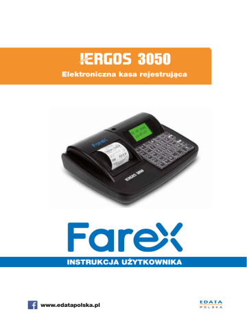 Elektroniczna kasa rejestrująca INSTRUKCJA UŻYTKOWNIKA www.edatapolska.pl 1. Specyfikacja techniczna...............................................................8 2. Operacje podstawowe ..............................................................10 2.1Wygląd kasy........................................................................10 2.2Gniazda..............................................................................10 2.2.1 Pozycja gniazd ........................................................10 2.2.2 Opis.........................................................................11 2.3Akcesoria............................................................................11 2.4Połączenia z urządzeniami zewnętrznymi............................12 2.5Kopia elektroniczna.............................................................12 2.6Ładowanie papieru..............................................................13 2.7Klawiatura...........................................................................13 2.8 Funkcje klawiszy............................................................................14 2.9 Wyświetlacz...................................................................................15 2.9.1 Wyświetlacz operatora..............................................15 2.9.2 Wyświetlacz klienta ..................................................16 3. Operacje programowania kasy...................................................17 3.1Opcje trybu programowania................................................17 3.2Wejście do trybu programowania........................................18 3.3Opcja: grupy (01).................................................................18 3.4Opcja: towary (03)...............................................................19 3.4.1 Dodatkowy opis towaru na paragonie ......................21 3.5Opcja: tandemy (04)............................................................22 3.6Opcja: płatności (08)............................................................23 3.7Opcja: rabat / dopłata (09)...................................................25 3.8Opcja: ustaw numer kasy (12).............................................26 3.9Opcja: opcje (13).................................................................27 3.10 Opcja: ustaw datę (14)......................................................28 3.11 Opcja: ustaw czas (15)......................................................29 3.12 Opcja: ustaw waluty (16)...................................................30 3.13 Opcja: przel. wal. / logo. (19)............................................31 3.14 Opcja: ustawienia portu (23)..............................................32 3.15 Opcja: klawisze szyb. sprzed (24)......................................33 3.16 Opcja: zmiana cen (25).....................................................34 Spis treści Spis treści .......................................................................................... 3 3 Spis treści 4 3.17 Opcja: Kasjer (26).............................................................35 3.17.1 Włączanie i wyłączanie trybu logowania kasjerów...36 3.18 Opcja: profil kasjera (27)....................................................37 3.19 Opcja: stawki (30).............................................................38 3.20 Opcja: nagłówek (31)........................................................39 3.21 Opcja: typ kodów kresk (44)..............................................40 3.22 Opcja: raporty użytkownika (45)........................................41 3.23 Opcja: makro (51).............................................................43 3.24 Opcja: karta SD (55)..........................................................43 3.25 Opcja: zmiana waluty (56).................................................44 3.26 Zmiana waluty ewidencyjnej..............................................45 3.27 Opcja: wydruki ustawień (90)............................................46 3.28 Przegląd techniczny (95)................................................47 4. Sprzedaż......................................................................................48 4.1 Sprzedaż PLU z zaprogramowaną ceną...........................48 4.2 Sprzedaż PLU z ceną otwartą..........................................49 4.3 Sprzedaż opakowań zwrotnych........................................50 4.4 Przyjmowanie opakowań zwrotnych...................................51 4.5 Anulowanie i stornowanie poszczególnych pozycji paragonu...............................................................52 4.6 Wpłata do kasy.................................................................54 4.7 Wypłata z kasy..................................................................54 4.8 Sprzedaż wielokrotna........................................................55 4.9 Stosowanie zaprogramowanego rabatu lub dopłaty..........56 4.10 Stosowanie rabatu lub dopłaty.........................................57 4.11 Inne formy płatności (karta, BON, obce waluty)................59 4.12 Dodawanie opisów do PLU..............................................60 4.13 Pobranie wartości z wagi.................................................61 4.14 Wprowadzanie numeru NIP klienta na paragonie sprzedaży........................................................61 4.15 Anulowanie operacji niezawierdzonych lub błędów...........62 4.16 Przykładowy paragon sprzedaży......................................63 5. Raporty.........................................................................................64 5.1 informacje ogólne.............................................................64 Spis treści 5.2 Lista raportów...................................................................65 5.3 Raporty niefiskalne............................................................67 5.3.1 Raport kasowy (13)..................................................67 5.3.2 Port opakowań zwrotnych (15)....