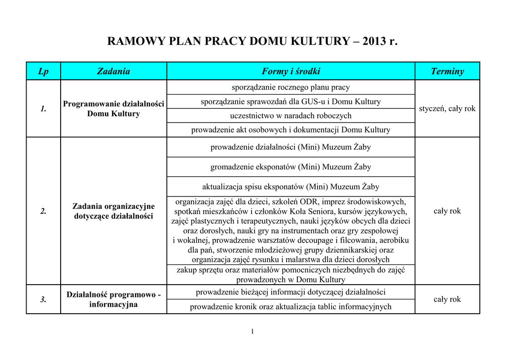 RAMOWY PLAN PRACY DOMU KULTURY
