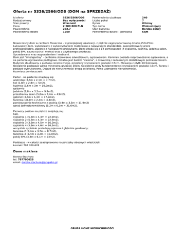 Oferta nr 5326/2566/ODS (DOM na SPRZEDAŻ)
