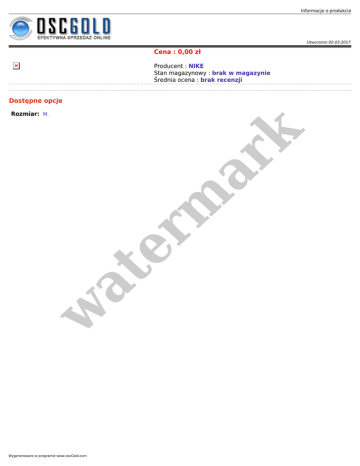 Informacje o produkcie Utworzono 02-03-2017 Cena : 0,00 zł Producent : NIKE Stan magazynowy : brak w magazynie Średnia ocena : brak recenzji Dostępne opcje w at er m ar k Rozmiar: M. Wygenerowano w programie www.oscGold.com