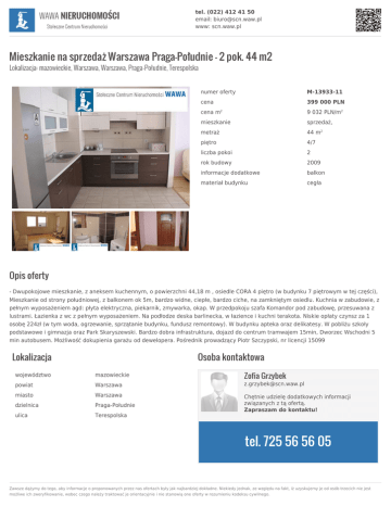 Mieszkanie na sprzedaż Warszawa Praga-Południe 44m2