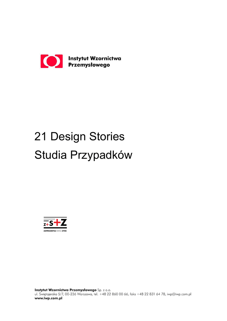 21 Design Stories Studia Przypadków 21 design stories. Studia p rz yp ad kó w pr es s r e l eas e Wystawa 21 design stories. Studia przypadków. Od 1 czerwca 2010 roku w Sali im. Wandy Telakowskiej IWP dostępna dla zwiedzających będzie wystawa. prezentująca efekty udanej współpracy pomiędzy projektantem i producentem. To 21 dowodów na to, ze design równa się pewny zysk. "21 design stories. Studia przypadków” to kolejna wystawa dobrych praktyk wzorniczych, organizowana w ramach prowadzonego przez IWP projektu "Zaprojektuj Swój Zysk", Poprawa konkurencyjności przedsiębiorstw poprzez zastosowanie wzornictwa, w ramach Programu Operacyjnego Innowacyjna Gospodarka. Wystawa powstała z myślą o polskich przedsiębiorcach i producentach, którym chcemy przekazać, że świadome wykorzystanie potencjału wzornictwa może pozytywnie wpłynąć na profil firmy, przynosząc jej sukces biznesowy. Na wystawie prezentujemy 20 zagranicznych produktów i usług obecnych na rynku nie dłużej niż 10 lat – 20 przykładów aplikacji wzornictwa, która wpłynęła na rentowność sprzedaży. Każdemu eksponatowi towarzyszy krótka historia jego powstania opracowana jako studium przypadku wg schematu: SYTUACJA/ PROBLEM (producenta) ROZWIĄZANIE (poprzez aplikację wzornictwa) REZULTAT (sukces rynkowy produktu, sukces biznesowy przedsiębiorstwa). Jako 21. szczególny przypadek prezentujemy stanowisko do pracy z komputerem w pozycji siedzącoleżącej, najnowszy produkt polskiej firmy PROFIm, owoc współpracy z IWP i Studiem 1:1, niezależnym studiem projektowym z Gdańska. Obecnie stanowisko jest na etapie przygotowywania do wdrożenia na rynek, na wystawie pojawi się dopiero w lipcu, po premierze w czasie finałów Imagine Cup 2010. Obiekty zostaną pokazane w 7 kategoriach (rozwój nowego produktu , sieć wymiany korzyści, udoskonalenie produktu, wyróżnienie produktu, materializowanie potrzeb, projektowanie odpowiedzialne, projektowanie zachowań ) uwzględniających różne konteksty współczesnego wzornictwa. W każdym przypadku podkreślone są dominujące aspekty i wartości design, które wyróżniają produkt, zapewniając mu wysoki popyt na rynku. Eksponatom towarzyszą dane obrazujące potencjał polskiego przemysłu. Chcemy, aby polski przedsiębiorca, działający w konkretnej branży, mógł nie tylko potwierdzić swój wkład w rozwój gospodarki, ale także odnaleźć bardzo konkretną inspirację dla swoich dalszych działań. 2 21 design stories. Studia p rz yp ad kó w pr es s r e l eas e Wśród eksponatów są się m.in. Wiatrak bezłopatkowy Dysona, owoc czteroletniej pracy zespołu inżynierów i projektantów pod kierownictwem Jamesa Dysona, 2009 Niszczarka do gałęzi Neo belgijskiej firmy Eliet, proj. Studio PiliPili, 2008 System W+W (Washbasin+Watercloset) firmy Roca, proj. G&O Buratti Lampa „eneloop” zasilana energią słoneczną firmy Sanyo Electric Co., Ltd., proj. Takuo Nomi, 2009 Inne firmy zagraniczne których eksponaty prezentujemy to: Akademika AS, SANYO Eletric Co., Ltd., Neptune Outdoor Furniture Ltd.,Desalto S.p.A.,Roca S. A.,HÅG AS,Adidas AG,ELIET NV,ICI Paints AKZO Nobel,CIAV (Centre International d'Art Verrier),Evoko Unlimited AB,OXO, Movisi Gmbh, Globe- Trotter Ltd.,Jordan AS, Giantmicrobes, Inc.,Don’t Lean Back Ltd.,Pfizer Inc.,LEGO Group ,Dyson Inc., PROFIm Sp. z o.o. 3 21 design stories. Studia p rz yp ad kó w pr es s r e l eas e Czas trwania wystawy 1 czerwca – 5 września 2010 (wstęp wolny) wtorek – niedziela w godz. 10.00 – 19.00 Instytut Wzornictwa Przemysłowego, Warszawa, ul. Świętojerska 5/7 w sali im. Wandy Telakowskiej Scenografia wystawy: Scenografia i projekt elementów identyfikacji wizualnej: Beata i Paweł Konarscy, Konarska-Konarski Design Studio Komisarzy wystawy: Kathryn Best, projektantka, architekt wnętrz, doradca w sprawach marki, autorka bestsellerowej książki „Design Management. Zarządzanie strategią, organizacją procesu projektowego i wdrażaniem nowego produktu” (2006), wykłada na INHolland University. W obecnie prowadzonych badaniach skupia się na potencjale i roli wzornictwa jako narzędzia innowacji i zmian w biznesie, sferze społecznej, środowisku. Krzysztof Bielski, Dyrektor Pionu Upowszechniania Wzornictwa, IWP Opieka merytoryczna: Beata Bochińska, Prezes Instytutu Wzornictwa Przemysłowego Komisarz wystawy: Kaja Kobylańska, Upowszechnianie Wzornictwa, IWP Współpraca: Małgorzata Kołtun Kontakt z mediami: Katarzyna Chałas tel. (22) 860-03-66 [email protected] 4 21 design stories. Studia p rz yp ad kó w pr es s r e l eas e Patroni medialni Wystawa jest realizowana w ramach prowadzonego przez IWP projektu "Zaprojektuj Swój Zysk" i jest współfinansowana ze środków Europejskiego Funduszu Rozwoju Regionalnego w ramach Programu Operacyjnego Innowacyjna Gospodarka. 5