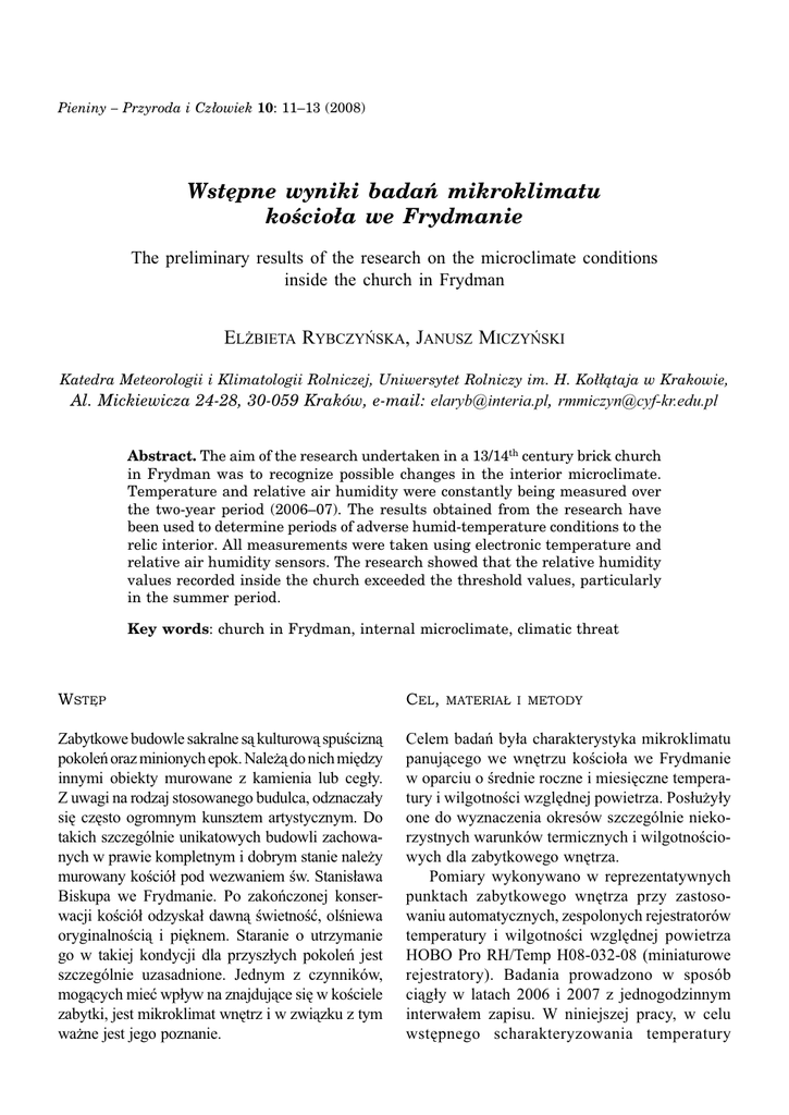 Rybczyńska E., Miczyński J. - Wstępne wyniki badań mikroklimatu