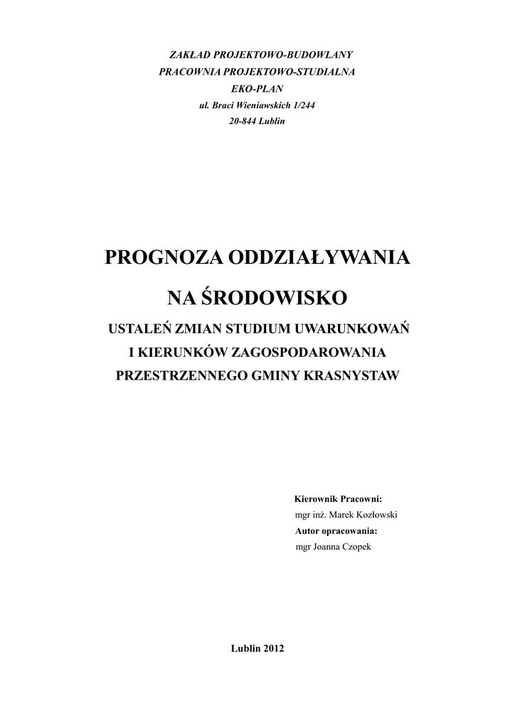studium uwarunkowań i kierunków zagospodarowania przestrzennego gminy Krasnystaw i analogicznie