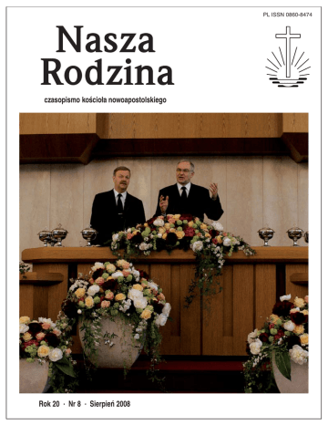 PL ISSN 0860-8474 Nasza Rodzina czasopismo kościoła nowoapostolskiego Rok 20 . Nr 8 . Sierpień 2008 S ¸ O W O W S T ¢ P N E Mili Bracia i Siostry, niekiedy zostaj´ zapytany, dlaczego Dary Ducha Âwi´tego, które sà wymienione w 1. Koryntian 12, 8-10, nie stajà si´ widoczne w ca∏okszta∏cie u piecz´towanych. Zak∏ada si´ przy tym, ˝e dary, takie jak: „mówienie j´zykami” – mówienie w nieznanych j´zykach – czy „uzdrawiania” poÊwiadczajà posiadanie Ducha. W sprawie tego pytania chcia∏bym zauwa˝yç, ˝e najpierw nale˝y si´ przyjrzeç tekstowi biblijnemu. Kiedy czyta si´ go dok∏adnie, wtenczas si´ poznaje, ˝e Aposto∏ Pawe∏ wylicza wszystkie dary, które wyst´powa∏y w zborze w Koryncie. Dlaczego to uczyni∏? Dlatego, ˝e w zborze by∏a pewna grupa, która szczyci∏a si´ posiadaniem szczególnych darów Ducha Âwi´tego. Prawdopodobnie podkreÊlano przede wszystkim wa˝noÊç „mówienia j´zykami”. Z tymi cz∏onkami zboru Aposto∏ si´ rozprawia i dochodzi do krytycznej oceny. „Mówienie j´zykami”, które byç mo˝e obok „daru uzdrawiania”, jest najbardziej spektakularne, zostaje okreÊlone przez Aposto∏a Paw∏a jako dar, który jedynie wzmacnia i wzbogaca tego, kto go posiada, podczas gdy zbór oraz ci, którzy jeszcze nie nawrócili si´ do Chrystusa, pozostajà z niczym. Dlatego te˝ Aposto∏ zarzàdza, aby ka˝de mówienie j´zykami zwiàzane by∏o z wy∏o˝eniem i by∏o zrozumia∏e. Aposto∏ Pawe∏ mówieniu j´zykami przeciwstawia mow´ proroczà, która jest nie tylko mowà otwierajàcà przysz∏oÊç, ale dotyczy Êwiadectwa o mocy i znaczeniu Jezusa Chrystusa w przesz∏oÊci, teraêniejszoÊci i w przysz∏oÊci dziejów zbawienia. Mowa prorocza ma wzmacniaç zbory w wierze, poniewa˝ w niej dochodzi do g∏osu sedno ewangelii. Aposto∏ podkreÊla, ˝e w∏aÊnie ta mowa prorocza jest wa˝na, a nie „mówienie j´zykami”, bowiem nie powstaje niebezpieczeƒstwo niezrozumienia. Mowa prorocza jest darem Ducha Âwi´tego, który tak˝e nam jest dany. Ukazuje si´ wtedy, gdy powa˝nie i z przekonaniem mówimy o Jezusie Chrystusie, naszym Panu, jako o podstawie naszego zbawienia. Mowa prorocza jest tam s∏yszalna, gdzie w centrum stoi Jezus Chrystus i znaczenie Jego Êmierci, zmartwychwstania i ponownego przyjÊcia. Jest s∏yszalna tak˝e wtedy, kiedy mówimy o znaczeniu i wa˝noÊci urz´du apostolskiego na wspó∏czesnym etapie dziejów zbawienia. W nawiàzaniu do darów duchowych Aposto∏ Pawe∏ wskazuje na centralnà pozycj´ wiary, nadziei i mi∏oÊci, które sà z pewnoÊcià najszlachetniejszymi darami Ducha. W∏aÊnie to one przede wszystkim poÊwiadczajà posiadanie Ducha poprzez - wiar´ w Jezusa Chrystusa jako podstaw´ zbawienia. - nadziej´ na Jego ponowne przyjÊcie. - mi∏oÊç do Boga i do naszego bliêniego. Mocà, która wszystko przenika, jednak˝e jest mi∏oÊç. Pozwólmy jej w nas dzia∏aç i nas kszta∏towaç. Ona jest najpi´kniejszym darem Ducha, poniewa˝ mi∏oÊç nigdy nie ustaje. Dary Ducha Świętego Z serdecznymi pozdrowieniami 2 N A B O ˚ E ¡ S T W O Po nabożeństwie grupa dzieci czekała na Głównego Apostoła Nabo˝eƒstwo zielonoÊwiàtkowe 2008 roku, które G∏ówny Aposto∏ przeprowadzi∏ 11 maja w koÊciele w Berlinie-Lichtenberg by∏o transmitowane na wszystkie kontynenty. W oko∏o 7500 zborach by∏o 760 000 uczestników, nie liczàc widzów i s∏uchaczy mediów publicznych. G∏ówny Aposto∏ w Berlinie - Niemcy „Umi∏owani, je˝eli Bóg nas tak umi∏owa∏, i myÊmy powinni nawzajem si´ mi∏owaç”. Tym s∏owem b∏ogos∏awieƒstwa z 1. Jana 4, 11 z okazji Êwi´ta narodzin KoÊcio∏a Chrystusa G∏ówny Aposto∏ przy o∏tarzu przywita∏ serdecznie wszystkich wiernych, a tym samym przedstawi∏ kluczowe przes∏anie swojej s∏u˝by: Wspólnota dzieci Bo˝ych. G∏ównemu Aposto∏owi podczas Zielonych Âwiàtek towarzyszyli, z wyjàtkiem dwóch, wszyscy europejscy aposto∏owie. W przededniu 10 maja odby∏a si´ wielogodzinna konferencja, na której aposto∏owie omawiali ró˝ne aktualne tematy koÊcielne. Natomiast po po∏udniu tego dnia ponad 50 aposto∏ów wraz z ˝onami uczestniczy∏o w koncercie berliƒskiego chóru szkoleniowego w koÊciele w Berlinie-Lichtenberg. Pod wieczór zaplanowana by∏a przeja˝d˝ka statkiem po Sprewie. G∏ówny Aposto∏ i jego towarzysze udali si´ na pok∏ad statku w Berlinie-Treptow. Podczas przeja˝d˝ki 3 skorzystali z dobrej mieszczaƒskiej kuchni, s∏uchajàc przy tym Êpiewu rosyjskiego chóru z Worone˝a. Po trzech godzinach statek przycumowa∏ przy Bramie Âlàskiej w BerlinieKreuzberg. Tam ponad po∏owa pasa˝erów skorzysta∏a z propozycji wysiadki, aby metrem powróciç do hotelu. Przy tej okazji nie zabrak∏o wielokulturowych wra˝eƒ, poniewa˝ akurat w ten weekend tradycyjnie na ulicach Berlina-Kreuzberg odbywa∏ si´ Karnawa∏ Kultur. N A B O ˚ E ¡ S T W O „Nie przestaję dziękować za was i wspominać was w modlitwach moich, aby Bóg Pana naszego Jezusa Chrystusa, Ojciec chwały, dał wam Ducha mądrości i objawienia ku poznaniu jego”. – Efezjan 1, 16. 17 – oi serdecznie umi∏owani bracia i siostry. Witam was w tegoroczne Zielone Âwiàtki i ka˝demu ˝ycz´ obfitoÊci b∏ogos∏awieƒstwa, si∏y i nowego zapa∏u w ˝yciu wiary. NiechbyÊmy na nowo odczuli, ˝e nie jesteÊmy sami, ˝e jesteÊmy we wspólnocie, i ˝e jesteÊmy prowadzeni i kierowani przez Boga. DziÊ w Niemczech obchodzony jest Dzieƒ Matki. Ten dzieƒ ma szczególny akcent – akcent wdzi´cznoÊci wobec matek. Podczas uroczystoÊci Êwi´tej wieczerzy dla umar∏ych szczególnie b´dziemy pami´taç o matkach, które sà ju˝ na tamtym Êwiecie, ale te˝ nie zapomnimy o ojcach. Je˝eli im okazujemy naszà wdzi´cznoÊç, to nie zapominamy o tym, ˝e ostatecznie wszelka wdzi´cznoÊç nale˝y si´ Bogu, M naszemu Ojcu. Niechby wdzi´cznoÊç przebrzmiewa∏a i by∏a odczuwalna te˝