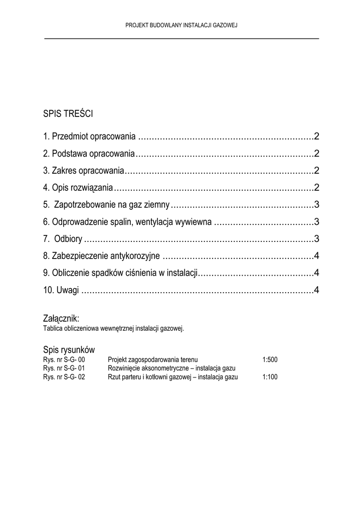 OPIS TECHNICZNY - INSTALACJA GAZU