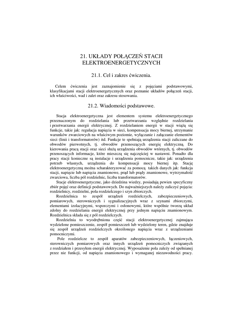 21. UKŁADY POŁĄCZEŃ STACJI ELEKTROENERGETYCZNYCH