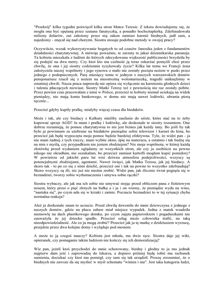 "Przekrój" kilka tygodni poświęcił kilka stron Matce Teresie. Z tekstu dowiadujemy się, że