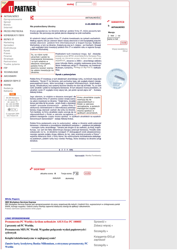 szukaj AKTUALNOŚCI Oprogramowanie Sprzęt Biznes Internet SUBSKRYPCJE 11.03.2009 03:19 b c d e f g Nie przekreślamy Ukrainy Kryzys gospodarczy na Ukrainie dotkn ą ł polskie firmy IT, kt óre poczyniły tam inwestycje. Nie porzucają one jednak planów ekspansji na rynki wschodnie. AKTUALNOŚCI Wersja: i html n j k l m n j txt k l m W ostatnich latach polskie firmy IT ch ętnie inwestowały na rynkach wschodnich. Według raportu DiS po czterech latach naszej obecno ści w Unii Europejskiej znacznie wzrosła obecno ś ć polskich firm informatycznych w krajach Europy ŚrodkowoWschodniej, w tym na Ukrainie. Znalazła się ona na 3. miejscu - po Czechach i Słowacji - pod względem ilości inwestycji polskich firm IT w ostatnim roku w regionie Europy Środkowo-Wschodniej. Marketing Sprzeda ż Dystrybucja Rynek Prawo Finanse Strategie Partnerstwo Trudne pytania To, co różni rynki ukraiński i polski to rozwiązania biznesowe, i w tym właśnie w obszarze rozwi ązań, polskie firmy IT powinny szuka ć szansy na udane inwestycje na Ukrainie. wpisz e-mail Więcej newsletterów IDG.pl Przykładami tych inwestycji mog ą być chociażby: przejęcie przez BPSC ukrai ńskiej firmy Kompass Plus , rozw ój n a U k r a i n i e p r z e z A c t i o n s i e c i s k l e p ów AGD/RTV/IT , otwarcie w 2006 r. ukrai ńskiego oddziału przez Infovide-Matrix, projekty realizowane przez firmę Atena świadczącą usługi IT i finansowe, czy inwestycje BLStream, Comarchu, Pentegy (d. Big Five X) i Software Mind. Rynek z potencjałem Polskie firmy IT inwestują w tych dziedzinach ukraińskiego rynku, na których mają duże możliwości. "Rynek IT na Ukrainie, jest pochodną tego, jak wygląda stopień rozwoju poszczególnych branż, które korzystają z rozwiązań informatycznych. Jeżeli chodzi o sprzęt, infrastrukturę oraz systemy biurowe Ukraina nie różni się od Polski. To, co różni rynki ukraiński i polski to rozwiązania biznesowe. W tym obszarze można powiedzieć, że ukraiński rynek IT wygląda mniej więcej tak, jak polski sprzed pięciu lat" - tłumaczy Aleksiej Krokos. Redakcja Reklama Jego zdaniem, to właśnie w obszarze rozwi ązań dla Firmy ukraińskie często biznesu polskie firmy IT powinny szukać swojej szansy wzorują się na na udane inwestycje na Ukrainie. "Dzięki temu, że polski odpowiednikach z biznes jest kilka lat do przodu - jeżeli chodzi o dojrzałość Polski w zakresie modeli i procesów biznesowych - polskie firmy IT zarządzania, a polskich zdobywszy doświadczenie w informatyzacji polskiego manager ów często biznesu mogą stanowić wartość dla rynku na Ukrainie. można spotka ć w Tym bardziej, że firmy ukraińskie często wzorują się na spółkach ukrai ńskich. odpowiednikach z Polski w zakresie zarządzania, a polskich managerów c z ęsto można spotkać w s p ółkach ukraińskich na wysokich kierowniczych stanowiskach" - dodaje Aleksiej Krokos. 04-204 Warszawa ul. Jordanowska 12 skr. poczt. 73 tel.: (22) 3217800 fax: (22) 3217888 © copyright 2004 IDG Poland SA Polskie firmy postanowiły wi ęc to wykorzysta ć, widząc w Ukrainie wielki potencjał biznesowy i ułatwienie w prowadzeniu działalności związane z - podobnym do polskiego - rozwojem rynku ukraińskiego. "Ukraina jest drugim co do wielkości, po Rosji, krajem Europy. Już sam ten fakty determinuje znaczący potencjał biznesowy. Ponadto wiele wskazywało na to, że dziedzina rozwiązań IT obsługujących rynek ubezpieczeniowy naszego sąsiada podąży drogą zbliżoną do tej, jaką wcześniej przeszła w Polsce " wyjaśnia Katarzyna Szulc z firmy Atena. Na wykorzystanie doświadczenia zdobytego na podobnym, polskim rynku liczy r ównież Pentegy, która świadczy na Ukrainie usługi doradcze. 1 2 3 4 dalej Wprowadził: Monika Tomkiewicz OCEŃ TEKST aktualna ocena: 0 statystyki Twoja ocena: 5 skomentuj White Papers IBM Workplace Services Express IBM Workplace Services Express jest oprogramowaniem do pracy zespołowej dla małych i średnich firm, wyposażonym w zintegrowany portal WWW, którego wygodny i dobrze znany interfejs zapewnia elastyczny dostęp do aplikacji i dokumentów. Pobierz darmowe opracowanie white paper. LINKI SPONSOROWANE Prenumerata PC Worlda z królem netbooków ASUS Eee PC 1000H! 2 prezenty od PC Worlda. Prenumerata MIX PC World. Wygodne połączenie wydań papierowych i cyfrowych Sprawdź » Zobacz więcej » Szczegóły » Książki teleinformatyczne w najlepszej cenie! Księgarnia IDG.pl zaprasza! Zamów kartę kredytową Banku Millennium, a otrzymasz prenumeratę PC Worlda Szczegóły » Prenumerata PC Worlda z DVD za darmo! Sprawdź to! » Aktualno ści - Oprogramowanie - Sprzęt - Biznes - Internet | Komunikaty firm | Przed premier ą | Technologie | Praca | Archiwum Biznes IT - Marketing - Sprzedaż - Dystrybucja - Rynek - Prawo - Finanse - Strategie - Partnerstwo Serwisy IDG | Regulamin | Redakcja | Reklama Serwis realizuje wytyczne ASME oraz uzupełnienia IDG dotycz ące zasad publikacji w mediach elektronicznych. Korzystanie z serwisu jest jednoznaczne z wyra żeniem zgody na następuj ące warunki obsługi. Prosimy też o zapoznanie się z ochroną prywatności. © copyright 2003-2008 IDG Poland S.A.