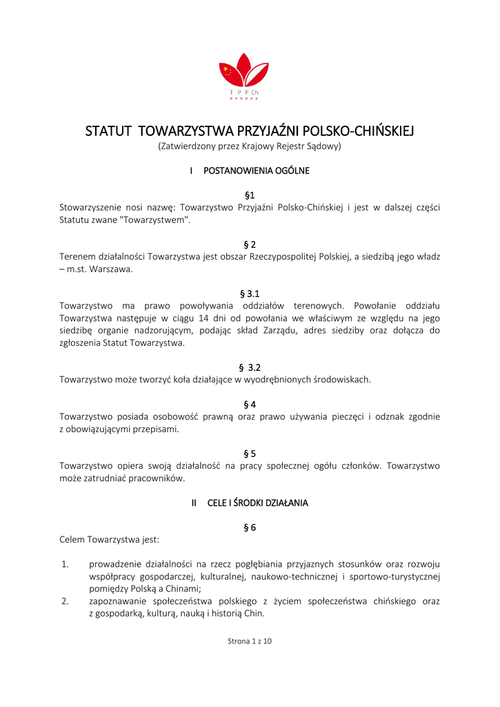 Statut TPPCh - Towarzystwo Przyjaźni Polsko