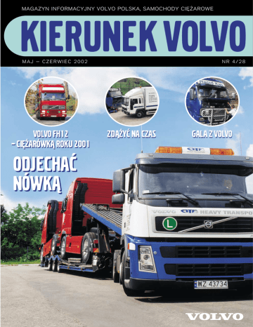 MAGAZYN INFORMACYJNY VOLVO POLSKA, SAMOCHODY CI¢˚AROWE KIERUNEK VOLVO NR 4/28 MAJ — CZERWIEC 2002 VOLVO FH12 – CI¢˚ARÓWKÑ ROKU 2001 ODJECHAå NÓWKÑ ZDÑ˚Yå NA CZAS GALA Z VOLVO W∏aÊciwa ekonomika transportu opiera si´ na trzech podstawowych zasadach: przewoziç jak najwi´cej, w jak najkrótszym czasie i po jak najni˝szych kosztach. Samochody ci´˝arowe Volvo zapewniajà mo˝liwie najlepsze rozwiàzania w tym zakresie. Jednak tylko sprawne pojazdy sà dochodowe. Zdajemy sobie z tego spraw´ i dlatego tak wielkà wag´ przyk∏adamy do jakoÊci oferowanych us∏ug serwisowych. Profesjonalna sieç stacji obs∏ugi i napraw na terenie ca∏ej Polski, ∏atwo dost´pne, idealnie dopasowane do pojazdu cz´Êci zamienne gwarantujà utrzymanie przez pojazd najwy˝szej jego trwa∏oÊci i osiàgów w d∏ugim okresie eksploatacji. Daje to oszcz´dnoÊci wynikajàce z ma∏ej usterkowoÊci samochodu, braku przestojów i jego d∏ugiej ˝ywotnoÊci. Dzi´ki us∏ugom Volvo Action Service w ka˝dej sytuacji mo˝na uzyskaç ca∏odobowo pomoc dla pojazdów Volvo. W przypadku wystàpienia awarii, wieloletnie doÊwiadczenie i sprawna organizacja naszej firmy sà gwarancjà udzielenia szybkiej i skutecznej pomocy na terenie ca∏ej Europy. Nasi klienci przyznajà, ˝e z roku na rok wzrasta poziom obs∏ugi posprzeda˝nej. Wszyscy dok∏adamy wszelkich staraƒ, aby ten trend utrzymaç i dà˝yç do jak najwi´kszego zadowolenia naszych klientów. Zapraszamy serdecznie wszystkich Paƒstwa do kontaktu z autoryzowanymi warsztatami Volvo i zapoznania si´ z oferowanymi przez nie us∏ugami oraz specjalnymi ofertami. Ma∏gorzata Durda Dyrektor Obs∏ugi Posprzeda˝nej Volvo Polska Sp. z o.o. Samochody Ci´˝arowe KIERUNEK VOLVO MAGAZYN INFORMACYJNY VOLVO POLSKA, SAMOCHODY CI¢˚AROWE WYDAWCA: Volvo Polska, Samochody Ci´˝arowe REDAGUJE ZESPÓ¸: Piotr Wysocki redaktor naczelny Maciej Trzebiatowski serwis Bart∏omiej Górzyƒski marketing Piotr ˚urawski sprzeda˝ Krzysztof Lipski redaktor Beata Aniszewska VFS Us∏ugi Finansowe Polska OPRACOWANIE GRAFICZNE: Target Project S P I S T R E  ZDJ¢CIA: I WST¢P AKTUALNOÂCI Z POLSKI I ZE ÂWIATA 2 4 NASI KLIENCI 9 VOLVO MA JU˚ 75 LAT VOLVO FH12 – CI¢˚ARÓWKÑ ROKU 2001 W POLSCE! PIERWSZY W EUROPIE POLSKA PROMOCJA NOWYCH VOLVO FH I VOLVO FM TRWA... ZMIANY W SIECI DEALERSKIEJ VOLVO WYNIKI SPRZEDA˚Y VOLVO GDYNIA – NOWY DYREKTOR ZARZÑDZAJÑCY VFS US¸UGI FINANSOWE POLSKA ODJECHAå NÓWKÑ NASZE SERWISY 12 CIEKAWE ZABUDOWY 18 MOTOLABORATORIUM 20 PROMOCJE SERWISOWE 23 VOLVO W MEDIACH 26 GALA Z VOLVO ZDÑ˚Yå NA CZAS NA RATUNEK MANUALNE SKRZYNIE BIEGÓW Studio 4na5 C PO PIERWSZE BEZPIECZE¡STWO VOLVO FM9 CI¢˚ARÓWKA WSZECHSTRONNIE UZDOLNIONA MEDAL DLA FH NOWE MODELE CI¢˚ARÓWEK VOLVO LAUR DLA VOLVO I C  O N L A AKTU KI I ZE ÂWIATA Z POLS VOLVO MA JU˚ 75 LAT W poprzednim numerze prezentowaliÊmy histori´ Volvo do koƒca lat 60. W tym wydaniu kontynuujemy jà od poczàtku lat 70. Lata siedemdziesiàte W latach siedemdziesiàtych Volvo okreÊli∏o jakoÊç, bezpieczeƒstwo i trosk´ o Êrodowisko jako podstawowe wartoÊci do zastosowania i wdro˝enia nie tylko na terenie swoich fabryk, ale równie˝ w swoich produktach. VESC, „Volvo Environmental Safety Car”, oraz seria ci´˝arówek F10/F12/Globetrotter, wyprowadzi∏y Volvo na czo∏owe miejsce w zakresie jakoÊci, bezpieczeƒstwa i ochrony Êrodowiska. Lata osiemdziesiàte Na poczàtku lat osiemdziesiàtych Volvo by∏o firmà o zasi´gu europejskim, sprzedajàcà tylko pewnà liczb´ pojazdów poza Europ´. Jednak 4 bioràc pod uwag´ ca∏à dekad´, Volvo sta∏o si´ firmà o zasi´gu Êwiatowym. Wraz z nabyciem zak∏adów produkujàcych ci´˝arówki – White Motor Corporation, oraz wielkimi post´pami w Ameryce Pó∏nocnej, Ameryce Po∏udniowej, Azji i Australii, Volvo przekszta∏ci∏o si´ w jednego z czo∏owych producentów ci´˝arówek i sta∏o si´ znaczàcym „graczem niszowym” na rynku samochodów osobowych. Jako przyk∏ady kilku komfortowych i bezpiecznych produktów Volvo z lat osiemdziesiàtych mo˝na przytoczyç: samochód osobowy Volvo 760GLE (1982), autobus turystyczny C10M (1984) oraz seri´ ci´˝arówek FL6, FL7 i FL10 (1985). Volvo umocni∏o tak˝e swojà pozycj´ jako przodujàcy producent maszyn budowlanych. Po po∏àczeniu si∏ z firmà amerykaƒskà, utworzono Volvo Michigan Euclid. Obecnie firma ta znana jest jako Volvo Construction Equipment. Jest to jeden z g∏ównych graczy w przemyÊle maszyn budowlanych, oferujàcy szerokà gam´ produktów i sieç dealerów na ca∏ym Êwiecie. Lata dziewi´çdziesiàte W latach dziewi´çdziesiàtych gama produktów Volvo stawa∏a si´ coraz bardziej nowoczesna i przyjazna dla Êrodowiska. Volvo kontynuowa∏o zakupy strategiczne zarówno w zakresie sprz´tu budowla- nego, jak i podwozi autobusowych. Przyk∏adami nowych produktów z lat dziewi´çdziesiàtych by∏y: nowa generacja samochodów ci´˝arowych (F H12/ F H16, VN, FM7/ FM10/ FM12, NH12) oraz nowa gama autobusów Volvo, z silnikami montowanymi z ty∏u pojazdu. W 1998 roku Volvo rozpocz´∏o produkcj´ samochodu osobowego S80. Krótko potem, na wiosn´ 1999 roku, sprzeda∏o dywizj´ Volvo Car Corporation do Ford Motor Company. Volvo uzna∏o, ˝e FMC mia∏o w owym czasie lepsze mo˝liwoÊci dokonania inwestycji w VCC. By∏y one wówczas niezwykle wa˝ne ze wzgl´du na rozwój nowej generacji samochodów, jak i ich dys- trybucj´. Dodatkowo, transakcja mia∏a poprawiç perspektywy VCC poprzez w∏àczenie jej w struktury najwi´kszej i najbardziej dochodowej grupy samochodowej na Êwiecie. Po trzech latach Volvo Cars by∏o ju˝ integralnà cz´Êcià Grupy Premier Automotive, wchodzàcej w sk∏ad Ford Motor Company. W koƒcu lat dziewi´çdziesiàtych Volvo umocni∏o swojà pozycj´ w Azji. Samochody ci´˝arowe, autobusy i maszyny budowlane by∏y montowane m.in. w Indiach, Tajlandii, Malezji i w Arabii Saudyjskiej. Volv