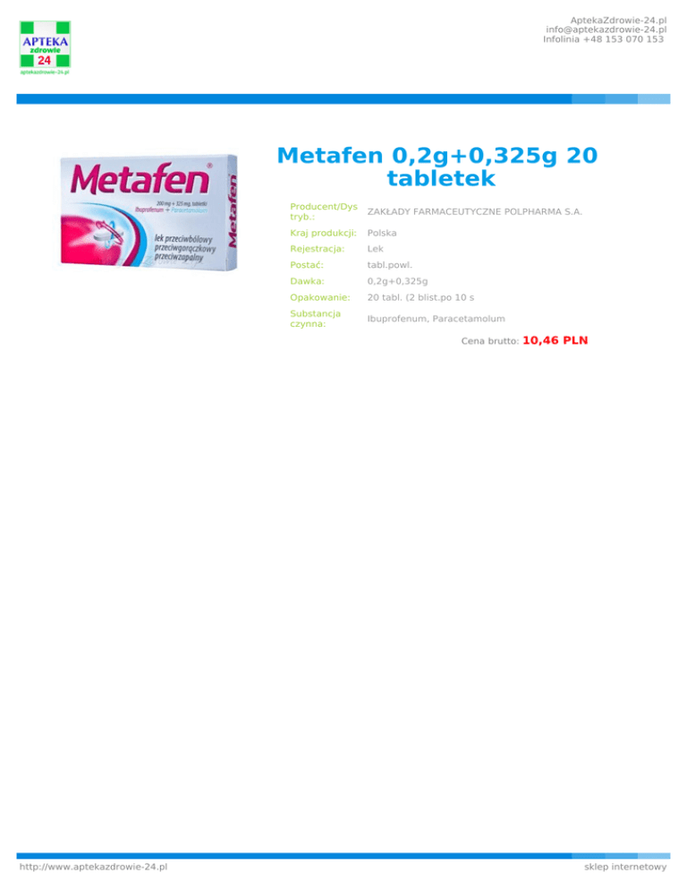 Metafen 0,2g+0325g 20 tabletek - Apteka Zdrowie-24