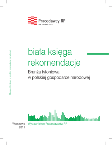 Branża tytoniowa w polskiej gospodarce narodowej biała księga rekomendacje Branża tytoniowa w polskiej gospodarce narodowej Warszawa 2011 Wydawnictwo Pracodawców RP Streszczenie: Zielona Księga, lipiec 2011 Jesienią 2010 r., pod auspicjami Pracodawców RP, została opublikowana Zielona Księga dotycząca sytuacji branży tytoniowej w Polsce. Szczególne znaczenie tej branży dla polskiej gospodarki narodowej przemawia za poświęceniem jej osobnej Księgi. Polska jest drugim producentem tytoniu w Unii Europejskiej, liczącym się eksporterem wyrobów tytoniowych oraz znaczącym producentem papierosów. Branża odgrywa również istotną rolę z punktu widzenia stabilności finansów publicznych. • Wpływy z tytułu akcyzy od wyrobów tytoniowych stanowiły ok. 9 % dochodów podatkowych Budżetu Państwa w 2010 r.1. Dochody z akcyzy i podatku VAT od wyrobów tytoniowych sukcesywnie rosną od wielu lat – z 16,3 mld zł w 2008 r. do 20,1 mld zł w 2010 r.2 i tym samym stanowią jeden z istotniejszych czynników zapewnia-jących stabilność finansów publicznych. • Branża tytoniowa odgrywa kluczową rolę w polskim bilansie handlu zagranicznego. W okresie od 2008 do 2010 r. dodatnie saldo z obrotu tytoniem i jego wyrobami z 1,5 mld zł do ok. 3,2 mld zł3, co stanowiło 32% całości salda obrotów towarami rolno-spożywczymi. Tak znaczna przewaga eksportu nad importem pokazuje, iż Polska jest zapleczem produkcyjnym dla branży tytoniowej w skali europejskiej. Zgodnie z szacunkami Ministerstwa Rolnictwa ponad połowa produkowanych w Polsce wyrobów tytoniowych wytwarzana jest na eksport. • W Polsce zlokalizowanych jest najwięcej zakładów produkujących gotowe wyroby tytoniowe (papierosy i tytoń do palenia) ze wszystkich krajów UE. Funkcjonuje tu 5 dużych fabryk, oprócz jednej należącej do Skarbu Państwa, które dostarczają produkty na rynek krajowy oraz rynki międzynarodowe, na łącznie 31 fabryk w całej Europie (włączając 27 krajów UE oraz Szwajcarię). Polska wyprzedza pod tym względem m.in. Niemcy i Francję (po 4 fabryki), Rumunię (3 fabryki), Szwajcarię (3 fabryki). Produkcja wyrobów tytoniowych w Polsce zlokalizowana jest w pięciu regionach kraju:, woj. małopolskim, łódzkim, wielkopolskim, podlaskim oraz lubelskim. 1 • Sprzedaż wyrobów tytoniowych stanowi istotną cześć funkcjonowania sektora handlu, zarówno hurtowego jak i detalicznego. Obecnie funkcjonuje ok. 130 000 punktów sprzedaży oferujących wyroby tytoniowe na terenie Polski. Sprzedaż papierosów odpowiada za około 13 proc. wartości sprzedaży koszyka FMCG4. • Uprawa tytoniu stanowi ważną część branży rolno-spożywczej w regionie lubelskim, krakowskim, kieleckim i rzeszowskim. Zaangażowane jest w nią ponad 14,3 tys. gospodarstw o łącznej powierzchni ok. 16,8 tys. ha, zatrudniających ponad 60 tys. osób. Wielkość produkcji w 2010 r. szacowana jest na ok. 34-36 tys. ton, co stanowi spadek w porównaniu do wielkości produkcji z 2009 r. o ok. 6,7-9,2 tys. ton.5 • Do 2009 r. plantatorzy tytoniu otrzymywali znaczne płatności uzupełniające: w 2008 r. - 276,1 mln zł, w 2009 r. - 386,2 mln zł. Tymczasem od 2010 roku plantatorzy otrzymują jedynie podstawowe, niezwiązane z produkcją płatności. Doprowadziło to do znacznego spadku dopłat do poziomu ok. 196,3 mln zł. Zmiana polityki subsydiów związana jest z nowym podejściem Komisji Europejskiej do sposobu finansowania plantatorów polegającym na stopniowym znoszeniu dopłat do uprawy tytoniu6. W dłuższym okresie czasu może to negatywnie wpłynąć na kondycję plantatorów, przykładowo w Grecji rezygnacja z dopłat spowodowała ograniczenie upraw tytoniu o ok. 80%7. Powtórzenie się takiej sytuacji w Polsce będzie miało negatywy wpływ nie tylko na plantatorów ale też na przychody podatkowe budżetu państwa jak i bilans handlu zagranicznego. • Istotnym problemem, z jakim boryka się cały sektor tytoniowy, jest spadek wolumenu legalnej sprzedaży papierosów. W ostatnim okresie zanotowano znaczny spadek o 6%, z 61 mld sztuk w 2009 r. do 57,5 mld sztuk w 2010 r.8 Najważniejszymi przyczynami spadku jest systematyczny wzrost obciążeń podatkowych (VAT i akcyza) i powiązany z tym procesem wzrost nielegalnego handlu i przemytu. • Zgodnie z dostępnymi badaniami wielkość polskiej szarej strefy w obrocie wyrobami tytoniowymi szacować można na ok. 11-12%9, przy czym w województwach wschodnich (woj. podlaskie i lubelskie) udział papierosów z nielegalnych 2 źródeł sięga nawet 53-55% spożycia. W 2010 r. Służba Celna ujawniła ok. 563 mln sztuk (ok. 1% legalnej sprzedaży) papierosów z przemytu, co stanowi spadek o 8% w porównaniu do 2009 r.10 • Znaczny udział przemytu i nielegalnego handlu w ogólnej sprzedaż papierosów w Polsce oznacza poważne straty podatkowe dla Budżetu Państwa. Przy założeniu, iż ok. 8,1 mld sztuk papierosów11 sprzedawanych jest w ramach szarej strefy, to stratę dochodów z akcyzy i VAT można szacować nawet na ok. 2,78 mld zł tylko w 2010 roku. • Wśród głównych przyczyn tak znacznej skali nielegalnego obrotu jest wysoka cena detaliczna legalnych papierosów w Polsce oraz różnice w cenach pomiędzy rynkiem polskim i krajami ościennymi. Średnia cena paczki papierosów w Polsce pod koniec 2010 r. wynosiła ok. 2,5 euro. Dla porównania, cena na Ukrainie (skąd trafia do Polski 43% przemycanych papierosów) wynosi 0,82 euro, a na Białorusi (25% przemytu) 0,80 euro12. Tak znaczne różnice w cenach spowodowane są wysokim udziałem akcyzy i podatku VAT sięgającym 84,77%13 w cenie papierosów w Polsce. • Planowane w Polsce oraz w Unii Europejskiej działania regulacyjne (np. zmiana Dyrektywy ws. wyrobów tytoniowych) przewidujące takie inicjatywy jak np. ujednolicenie opakowań mogą sprzyjać wzrostowi skali przemytu i nielegalnego handlu. Związane to będzie z obniżeniem barier (np. mniejsze koszty podrabiania opakowań) dla w