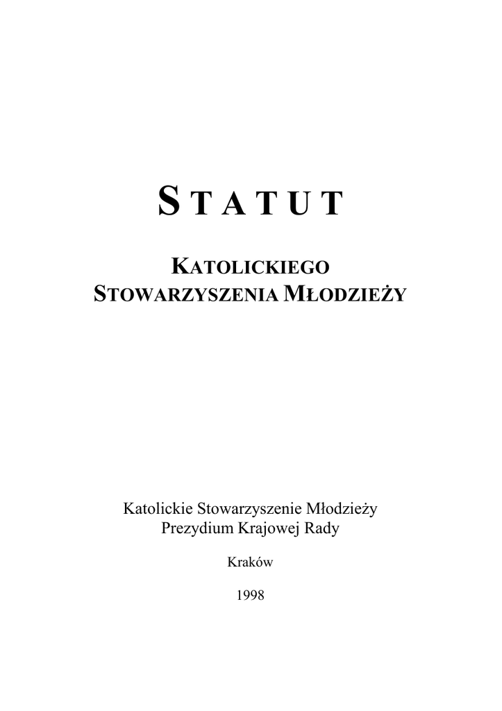 STATUT KATOLICKIEGO STOWARZYSZENIA MŁODZIEśY Katolickie Stowarzyszenie MłodzieŜy Prezydium Krajowej Rady Kraków 1998 Niniejszy Statut został zatwierdzony przez 261. Konferencję Plenarną Episkopatu Polski obradującą w Warszawie w dniach od 29 kwietnia do 1 maja 1993 r. (Znak: SET-70-29) Za zgodność Bp Tadeusz Pieronek Sekretarz generalny Episkopatu Polski Warszawa 19.05.1993 r. Nowelizacja statutu podjęta uchwałą Krajowej Rady KSM nr 4/97 z dn. 26 września 1997 r.; zatwierdzona przez 293. Konferencję Plenarną Episkopatu Polski obradującą w Warszawie w dn. 11-12 marca 1998 r. (Znak: SEP-7.2.1-10) Dekret zatwierdzający podpisali: + Piotr Libera Sekretarz Generalny Konferencji Episkopatu Polski + Józef Kardynał Glemp Przewodniczący Konferencji Episkopatu Za zgodność z oryginałem Ks. Prałat Antoni Sołtysik Generalny Asystent Kościelny Stowarzyszenia Kraków 03.05.1998 r. Nadanie osobowości prawnej kościelnej: Dekret Konferencji Episkopatu Polski z dnia 10 października 1990 r. Nadanie osobowości prawnej cywilnej: Rozporządzenie Ministra - Szefa Urzędu Rady Ministrów Dz. U. Nr 56, poz. 263, z dnia 30.06.1993 r. Prawa przedruku zastrzeŜone! ISBN 83-85903-87-9 Rozdział 1 Postanowienia ogólne §1 Katolickie Stowarzyszenie MłodzieŜy jest stowarzyszeniem kościelnym, zrzeszającym młodych katolików świeckich, działającym na terenie całej Polski. Stowarzyszenie pozostaje pod zwierzchnim kierownictwem Konferencji Episkopatu Polski, która czuwa nad jego formacją i działalnością przez generalnego asystenta kościelnego. W swoich ideach, zadaniach i sposobach działania jest kontynuatorem Katolickiego Stowarzyszenia MłodzieŜy Męskiej i Katolickiego Stowarzyszenia MłodzieŜy śeńskiej, będących częścią Akcji Katolickiej, działających w Polsce do roku 1953, uwzględniając potrzeby obecnej katolickiej młodzieŜy polskiej. §2 Podstawowe struktury organizacyjne Stowarzyszenia na terenie kraju są ściśle związane ze strukturami organizacyjnymi Kościoła. §3 Siedzibą Stowarzyszenia jest Warszawa. §4 W diecezjach Stowarzyszenie pozostaje pod zwierzchnim kierownictwem biskupa diecezjalnego, który je powołuje i rozwiązuje oraz czuwa nad formacją i jego działalnością przez diecezjalnego księdza asystenta kościelnego. Siedzibą Stowarzyszenia diecezjalnego jest miasto - siedziba biskupa diecezji. §5 Stowarzyszenie jako całość posiada osobowość prawną kościelną i cywilną. W diecezjach Stowarzyszenie posiada osobowość prawną kościelną i moŜe posiadać osobowość prawną cywilną, o którą występuje w trybie analogicznym jak Stowarzyszenie ogólnopolskie. §6 Katolickie Stowarzyszenie stowarzyszeniach. MłodzieŜy nie podlega prawu o §7 Podstawowymi ogniwami Stowarzyszenia są Oddziały parafialne oraz równorzędne i współpracujące z nimi Koła Środowiskowe na terenie parafii (np. Koła Szkolne), które powołuje Stowarzyszenie diecezjalne za zgodą księdza proboszcza lub księdza biskupa. §8 W ramach jednego lub kilku dekanatów, prezesi oddziałów parafialnych i kół środowiskowych, w porozumieniu z Zarządem Diecezjalnym Stowarzyszenia, mogą utworzyć okręg celem wzajemnej współpracy i kontaktu. §9 Zarząd Stowarzyszenia stanowi Krajowa Rada Stowarzyszenia, w skład której wchodzą prezesi Zarządów Diecezjalnych i po jednym delegacie Stowarzyszeń Diecezjalnych. W skład rady wchodzi generalny ksiądz asystent, a takŜe asystenci diecezjalni - z kompetencjami jakie daje statut. §10 Z ramienia władzy kościelnej opiekę duchowną nad Stowarzyszeniem sprawują księŜa asystenci. Czuwają oni nad duchową formacją członków oraz doktrynalną prawowiernością w sprawach wiary i moralności, a takŜe nad zgodnością działalności ze statutem Stowarzyszenia. 1. Asystenta generalnego, którego proponują diecezjalni księŜa asystenci, mianuje Konferencja Episkopatu Polski, asystenta diecezjalnego - biskup diecezjalny, asystentem oddziału parafialnego i koła środowiskowego jest ksiądz proboszcz lub wyznaczony przez niego ksiądz wikariusz albo ksiądz katecheta. 2. Ksiądz asystent w Stowarzyszeniu jest przedstawicielem tej władzy, która go mianowała: • ma prawo udziału we wszystkich zebraniach Stowarzyszenia; • ma głos decydujący w sprawach wiary i moralności, od którego przysługuje Stowarzyszeniu prawo do odwołania do biskupa diecezjalnego oraz głos doradczy w kwestiach organizacyjnych. §11 Świętem patronalnym Stowarzyszenia jest uroczystość Chrystusa Króla Wszechświata. Patronami Stowarzyszenia są: św. Stanisław Kostka, bł. Karolina Kózkówna. §12 Godłem Stowarzyszenia jest połączenie KrzyŜa i Orła Polskiego. Stowarzyszenie uŜywa własnej roty, przyrzeczenia, hymnu, sztandaru, odznaki organizacyjnej, legitymacji członkowskich oraz pieczęci okrągłej i podłuŜnej z nazwą i adresem. Rozdział 2 Cel, zadania, środki §13 Zasadniczym celem Stowarzyszenia jest kształtowanie dojrzałych chrześcijan oraz aktywne uczestnictwo we wspólnocie i misji Kościoła przez szerzenie i upowszechnianie katolickich wartości i zasad we wszystkich dziedzinach Ŝycia, zwłaszcza społecznego i kulturalnego. §14 Zadaniem Katolickiego Stowarzyszenia MłodzieŜy jest w szczególności: 1. pomoc we wszechstronnym rozwoju młodego człowieka, zwłaszcza stwarzanie atmosfery mobilizującej do pracy nad sobą i do kształtowania osobowości katolika i Polaka; 2. ubogacenie wiary: szerzenie wiedzy religijnej, prawd wiary, zasad moralnych, rozwijanie praktyk religijnych w Ŝyciu osobistym i wspólnotowym, zwłaszcza pełnego uczestniczenia we Mszy św.; 3. szerzenie nauki społecznej Kościoła oraz wprowadzanie jej w Ŝycie; zapoznawanie się na bieŜąco z dokumentami Kościoła powszechnego i lokalnego, szczególnie dotyczącymi młodzieŜy; 4. organizowanie Ŝycia młodzieŜowego, moŜliwie róŜnych jego dziedzin; 5. troska o rozwój wiedzy ogólnej, specjalistycznej i k