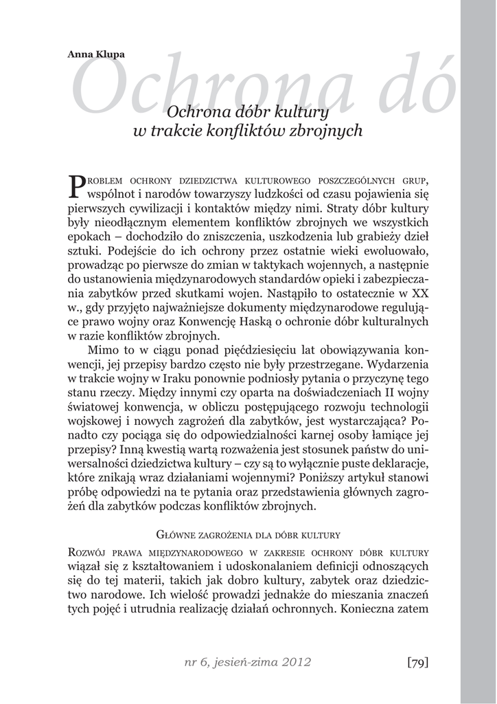 Ochrona dóbr kultury w trakcie konfliktów zbrojnych