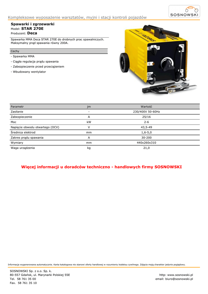 Sosnowski - Karta Katalogowa - Spawarki i zgrzewarki Deca STAR
