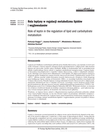Rola leptyny w regulacji metabolizmu lipidów i węglowodanów Role