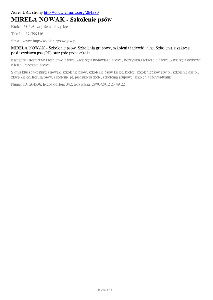 MIRELA NOWAK - Szkolenie psow, Kielce