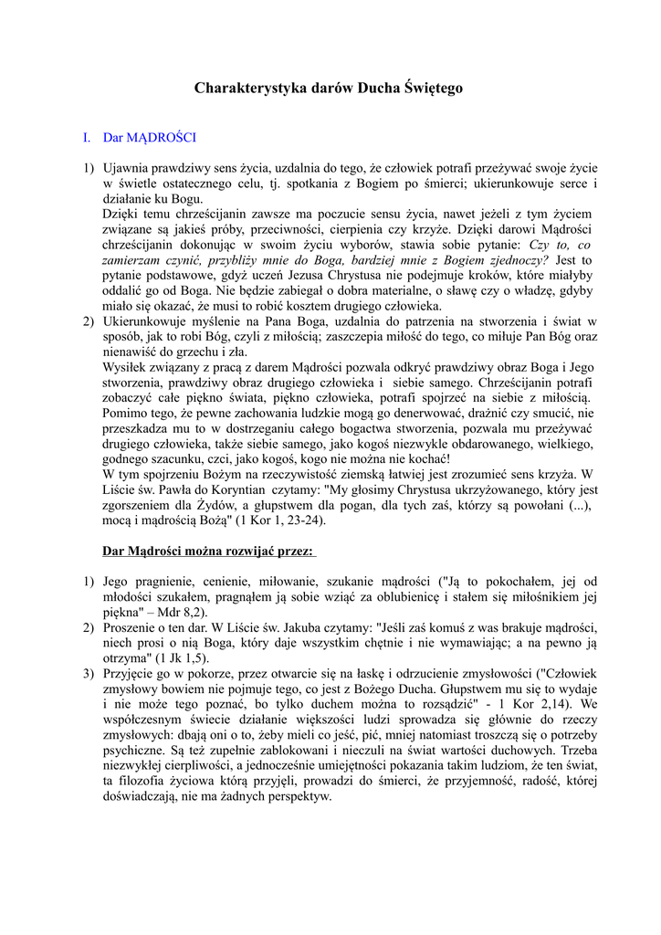 związane są jakieś próby, przeciwności, cierpienia czy krzyże. Dzięki darowi Mądrości