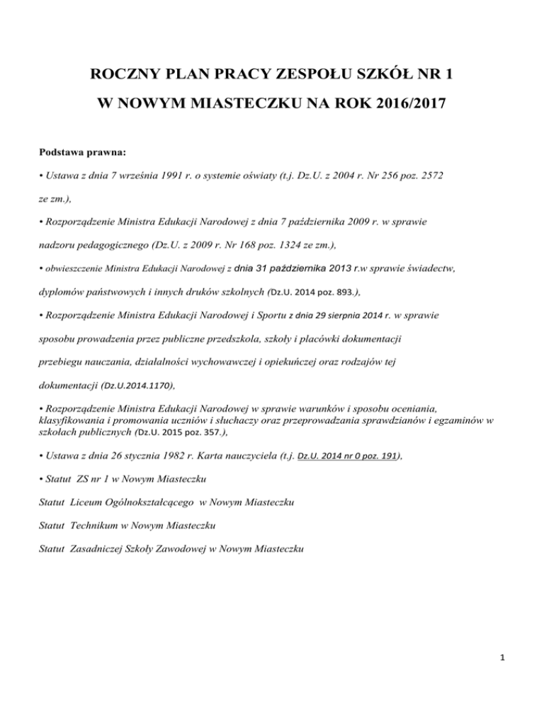 plan pracy 2016_2017 - Zespół Szkół nr 1 w Nowym Miasteczku