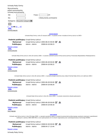 Uchwały Rady Gminy Uchwały Rady Gminy Wyszukiwarka pokaż