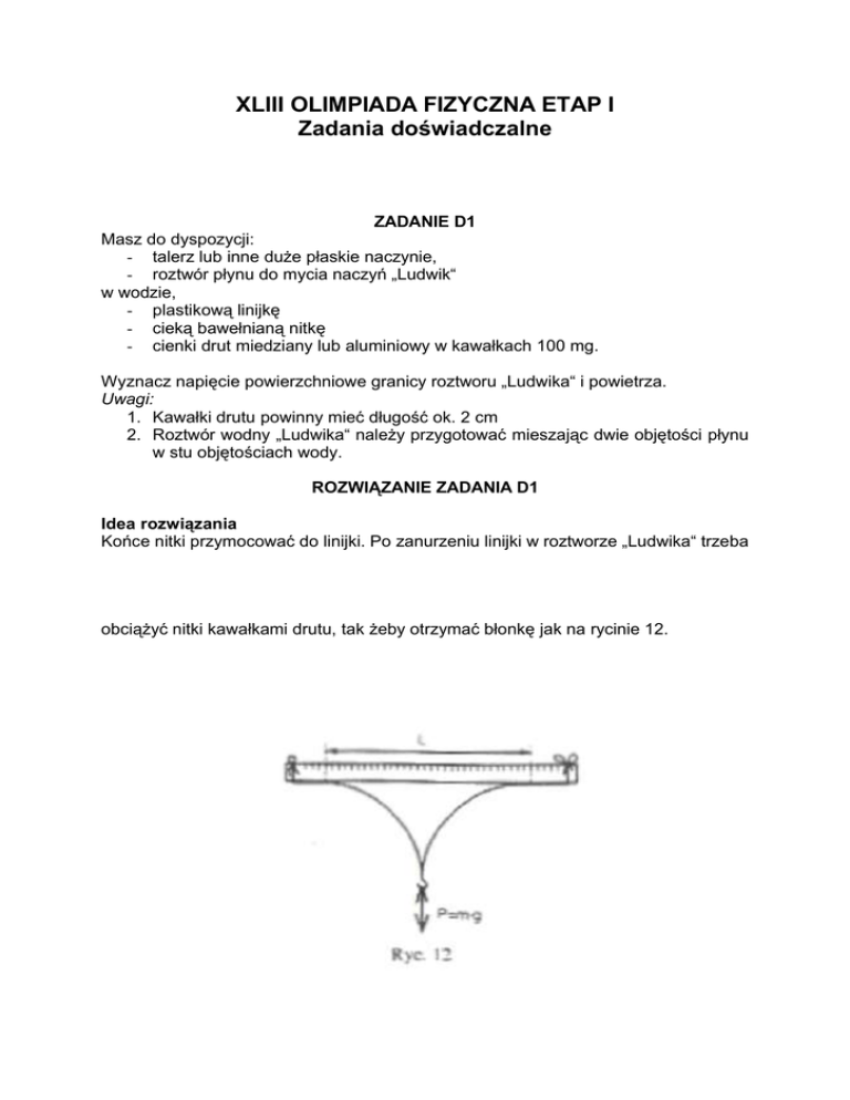 XLIII OLIMPIADA FIZYCZNA ETAP I Zadania doświadczalne