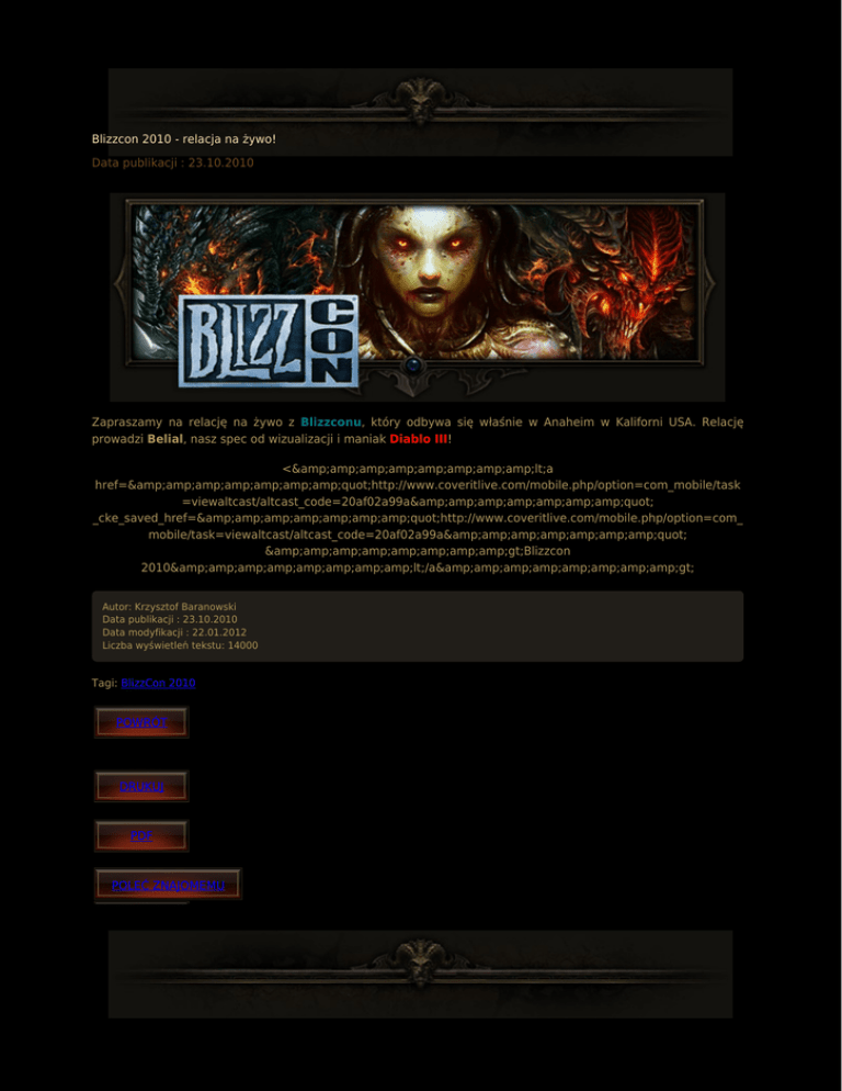 Blizzcon 2010 - relacja na żywo! Data publikacji