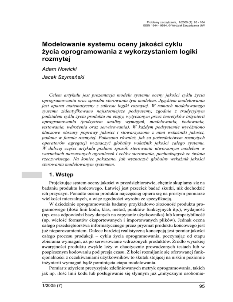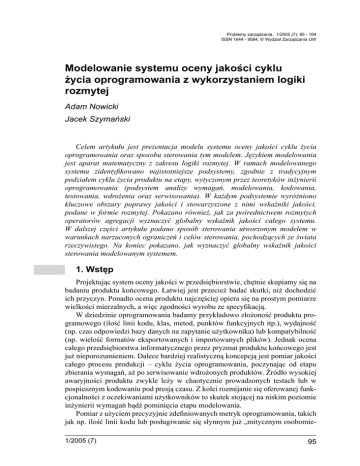 Modelowanie systemu oceny jakości cyklu życia oprogramowania z