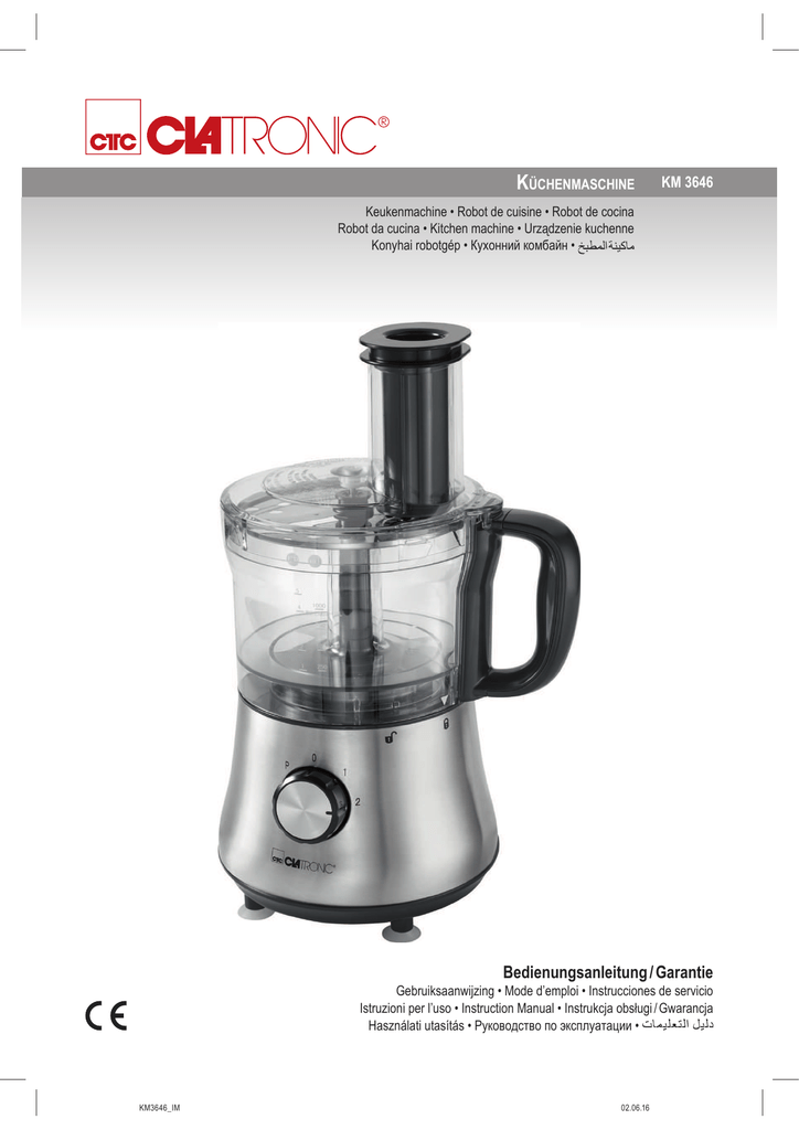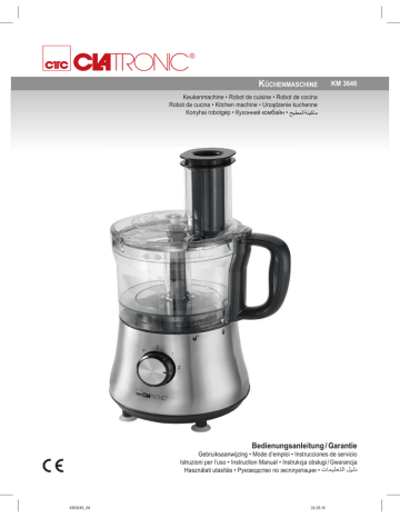 KÜCHENMASCHINE KM 3646 Keukenmachine • Robot de cuisine • Robot de cocina 5RERWGDFXFLQD.LWFKHQPDFKLQH8U]ąG]HQLHNXFKHQQH .RQ\KDLURERWJpSɄɭɯɨɧɧɢɣɤɨɦɛɚɣɧ Bedienungsanleitung / Garantie Gebruiksaanwijzing • Mode d’emploi • Instrucciones de servicio ,VWUX]LRQLSHUO¶XVR,QVWUXFWLRQ0DQXDO,QVWUXNFMDREVáXJL*ZDUDQFMD +DV]QiODWLXWDVtWiVɊɭɤɨɜɨɞɫɬɜɨɩɨɷɤɫɩɥɭɚɬɚɰɢɢ KM3646_IM 02.06.16 Übersicht der Bedienelemente Overzicht van de bedieningselementen • Liste des différents éléments de commande Indicación de los elementos de manejo • Elementi di comando • Overview of the Components 3U]HJOąGHOHPHQWyZREVáXJL$NH]HOĘHOHPHNiWWHNLQWpVH Ɉɛɡɨɪɞɟɬɚɥɟɣɩɪɢɛɨɪɚ 3 KM3646_IM 02.06.16 ,QVWUXNFMDREVâXJL ']LĊNXMHP\]DZ\EyUQDV]HJRSURGXNWX0DP\QDG]LHMĊĪH NRU]\VWDQLH]XU]ąG]HQLDVSUDZL3DĔVWZXUDGRĞü 6\PEROHXī\WHZWHMLQVWUXNFMLREVâXJL :DĪQHLQIRUPDFMHGRW\F]ąFHEH]SLHF]HĔVWZDXĪ\WNRZQLNDVą VSHFMDOQLHZ\UyĪQLRQH.RQLHF]QLHVWRVXMVLĊGRW\FKZVND]yZHNDE\XQLNQąüZ\SDGNyZLXV]NRG]HQLDXU]ąG]HQLD 2675=(Ī(1,( 2VWU]HJDSU]HG]DJURĪHQLDPLGOD]GURZLDLZVND]XMHQD SRWHQFMDOQHU\]\NDREUDĪHĔ UWAGA: :VND]XMHQDSRWHQFMDOQH]DJURĪHQLDGODXU]ąG]HQLDOXE innych przedmiotów. WSKAZÓWKA: :\UyĪQLDSRUDG\LLQIRUPDFMHZDĪQHGODXĪ\WNRZQLND 6SLVWUHğFL 3U]HJOĆGHOHPHQWyZREVâXJL .............................................. 3 Ogólne uwagi ...................................................................... 51 6SHFMDOQHZVND]yZNL]ZLĆ]DQH]EH]SLHF]QĆ REVâXJĆWHJRXU]ĆG]HQLD.................................................... 52 Zastosowanie zgodne z zamierzeniem ............................ 53 2SLVF]ċğFL'RVWDUF]RQHF]ċğFL ...................................... 54 :\SDNRZDQLHXU]ĆG]HQLD .................................................. 54 2JyOQHZVND]yZNLGRW\F]ĆFHXī\WNRZDQLD .................... 54 )XQNFMHXU]ąG]HQLD .......................................................... 54 (OHNWU\F]QHSRáąF]HQLD .................................................... 54 Korzystanie z misy roboczej ............................................. 54 0RQWDĪPLV\URERF]HMRUD]NRĔFyZHN ............................. 54 7DEHODXĪ\FLDNRĔFyZHN .................................................. 55 :DĪQHXZDJLGRW\F]ąFHLQG\ZLGXDOQ\FK]DVWRVRZDĔ .... 55 .RQLHFSUDF\LGHPRQWDĪPLV\ ......................................... 55 Blender ................................................................................. 56 ,QVWUXNFMHXĪ\WNRZDQLDEOHQGHUD...................................... 56 0RQWDĪSRMHPQLNDPLHV]DMąFHJR .................................... 56 Przygotowanie.................................................................. 56 ']LDáDQLHPLNVHUD ............................................................. 56 'RNáDGDQLHVNáDGQLNyZ .................................................... 56 =DWU]\PDQLHSUDF\............................................................ 56 Czyszczenie ......................................................................... 56 Obudowa silnika ............................................................... 57 .RĔFyZNLXU]ąG]HQLDNXFKHQQHJR .................................. 57 $NFHVRULDEOHQGHUD .......................................................... 57 Przechowywanie ................................................................. 57 Usterki i sposoby ich usuwania ........................................ 57 Dane techniczne.................................................................. 58 Warunki gwarancji .............................................................. 58 Usuwanie ............................................................................. 58 =QDF]HQLHV\PEROXÄ3RMHPQLNQDĞPLHFL³ ....................... 58 Ogólne uwagi 3U]HGXUXFKRPLHQLHPXU]ąG]HQLDSURV]ĊEDUG]RGRNáDGQLH SU]HF]\WDüLQVWUXNFMĊREVáXJL3URV]Ċ]DFKRZDüMąZUD]] NDUWąJZDUDQF\MQąSDUDJRQHPLZPLDUĊPRĪOLZRĞFLUyZQLHĪ NDUWRQHP]RSDNRZDQLHPZHZQĊWU]Q\P3U]HND]XMąFXU]ąG]HQLHLQQHMRVRELHRGGDMMHMWDNĪHLQVWUXNFMĊREVáXJL • 3URV]ĊZ\NRU]\VW\ZDüXU]ąG]HQLHMHG\QLHGODSU\ZDWQHJR FHOXMDNL]RVWDáSU]HZLG]LDQ\GODXU]ąG]HQLD8U]ąG]HQLH WRQLH]RVWDáRSU]HZLG]LDQHGRXĪ\WNXZUDPDFKG]LDáDOQRĞFLJRVSRGDUF]HM • 3URV]ĊQLHNRU]\VWDü]XU]ąG]HQLDQD]HZQąWU]3URV]Ċ WU]\PDüXU]ąG]HQLH]GDOHNDRGFLHSáDEH]SRĞUHGQLHJR SURPLHQLRZDQLDVáRQHF]QHJRZLOJRFLZĪDGQ\PZ\SDGNX QLH]DQXU]DüZVXEVWDQFMDFKSá\QQ\FKRUD]RVWU\FK NUDZĊG]L3URV]ĊQLHREVáXJLZDüXU]ąG]HQLDZLOJRWQ\PL GáRĔPL-HĪHOLXU]ąG]HQLHMHVWZLOJRWQHOXEPRNUHSURV]Ċ QDW\FKPLDVWZ\FLąJQąüZW\F]NĊ • -HĪHOLQLHNRU]\VWDFLH3DĔVWZR]XU]ąG]HQLDMHĪHOL FKFHFLH3DĔVWZR]DPRQWRZDüMDNLHĞDNFHVRULDZFHOX Z\F]\V]F]HQLDOXEZSU]\SDGNXMDNLFKNROZLHN]DNáyFHĔ SURV]Ċ]DZV]HZ\áąF]\üXU]ąG]HQLHLZ\MąüZW\F]NĊ] JQLD]GNDQDOHĪ\FLąJQąü]DZW\F]NĊQLH]DSU]HZyG • 3UDFXMąFHJRXU]ąG]HQLDnieQDOHĪ\SR]RVWDZLDüEH] QDG]RUX3U]HGRSXV]F]HQLHPSRPLHV]F]HQLDXU]ąG]HQLH QDOHĪ\]DZV]HZ\áąF]DüLZ\FLąJDüZW\F]NĊVLHFLRZą] gniazda. • 1DOHĪ\UHJXODUQLHVSUDZG]DüF]\XU]ąG]HQLHLNDEHO VLHFLRZ\QLHVąXV]NRG]RQH:UD]LHXV]NRG]HQLDQDOHĪ\ SU]HVWDüNRU]\VWDü]XU]ąG]HQLD • 3URV]ĊVWRVRZDüW\ONRRU\JLQDOQHDNFHVRULD • 'ODEH]SLHF]HĔVWZDG]LHFLSURV]ĊQLH]RVWDZLDüVZRERGQLHGRVWĊSQ\FKF]ĊĞFLRSDNRZDQLDWRUE\SODVWLNRZH kartony, styropian itp.). 2675=(Ī(1,( 1LHSR]ZDODMG]LHFLRPEDZLüVLĊIROLą1LHEH]SLHF]Hĕstwo uduszenia! 51 KM3646_IM 02.06.16 6SHFMDOQHZVND]yZNL]ZLĆ]DQH]EH]SLHF]QĆ REVâXJĆWHJRXU]ĆG]HQLD • • • • • • • • • • • 2675=(ĪENIE: 5\]\NRREUDīHĕ 2VWU]HGRWDUFLDLNURMHQLDRUD]RVWU]HGRNURMHQLDZNRVWNLVąEDUdzo ostre na powierzchniach przeznaczonych do krojenia i tarcia! 8Ī\ZDüW\FKRVWU]\]NRQLHF]QąRVWURĪQRĞFLąDE\QLHGRSXĞFLüGR SRZVWDQLDREUDĪHĔ 1RĪHZQDF]\QLXGRPLHV]DQLDVąRVWUH :\áąF]\üXU]ąG]HQLHLRGáąF]\üRG]DVLODQLDVLHFLRZHJRSU]HG Z\PLDQąDNFHVRULyZOXENRĔFyZHNNWyUHSRUXV]DMąVLĊSRGF]DV pracy. =DZV]HRGáąF]DüXU]ąG]HQLHRG]DVLODQLDNLHG\MHVWSR]RVWDZLRQH EH]QDG]RUXLSU]HGPRQWDĪHPGHPRQWDĪHPOXEF]\V]F]HQLHP 3U]HGZáąF]HQLHPXU]ąG]HQLDVSUDZG]LüF]