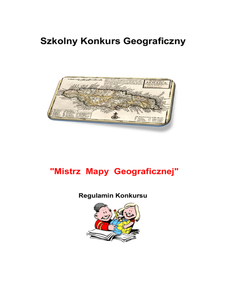 Szkolny Konkurs Geograficzny "Mistrz Mapy Geograficznej" Regulamin Konkursu 1. Konkurs skierowany jest do wszystkich chętnych uczniów klas I-III gimnazjum. 2. Konkurs trwać będzie od 17 października 2011 r. do 31 maja 2012 r. 3. Celem konkursu jest rozbudzanie zainteresowania geografią, światem, mapami, rozwinięcie umiejętności korzystania z różnych źródeł wiedzy geograficznej, a głównie czytania map. 4. Konkurs odbędzie się w 6 edycjach. Każda edycja składa się z pytań dotyczących poszczególnych kontynentów obejmujących następujące zagadnienia: o rozpoznawanie obiektów geograficznych na podstawie konturów, o rozpoznawanie obiektów geograficznych na podstawie opisu, o rozpoznawanie obiektów geograficznych na podstawie zdjęć, o znajomość rekordów poszczególnych kontynentów, o rozwiązywanie pytań problemowych, o wykonywanie obliczeń geograficznych. 5. Arkusze pytań będą dostępne od 17 października na stronie internetowej szkoły przy nazwisku organizatora-Beaty Jankowskiej lub w gablocie między salą 304 A i 303A. Uczestnicy konkursu oddają odpowiedzi maksymalnie do 7 dni od ogłoszenia pytań na szkolnej stronie www. 6. Wyniki każdej z edycji konkursu będą podawane na szkolnej stronie www oraz w gablocie obok sali 304A Obowiązujące terminy: Numer edycji Ogłoszenie pytań 1. 2. 3. 4. 5. 6. 17.10.2011 14.11.2011 05.12.2011 16.01.2012 19.03.2012 07.05.2012 Ostatni dzień oddawania odpowiedzi 24.10.2011 21.11.2011 12.12.2011 23.01.2012 26.03.2012 14.05.2012 7. Uczniowie biorący udział w konkursie, którzy zdobędą minimum 90% możliwych do uzyskania punktów otrzymują ocenę cząstkową 6 (celującą), jeżeli 80 - 89% ocenę 5 (bardzo dobrą), 70-79%-ocenę dobrą. 8. Ważność oceny liczona jest razy 3- jak sprawdzian. 9. Prace będą przyjmowane od pierwszych 5 uczniów z każdej klasy. 10. 10 uczniów, którzy zdobędą w całym konkursie najwięcej punktów weźmie udział w majowym finale o tytuł - Szkolnego Mistrza Mapy Geograficznej. 11. Laureaci konkursu finałowego zostaną nagrodzeni nagrodami w czasie apelu Gali Mistrzów na zakończenie roku szkolnego 2011-2012. Życzymy wszystkim bardzo dobrej zabawy podczas zgłębiania wiedzy geograficznej!
