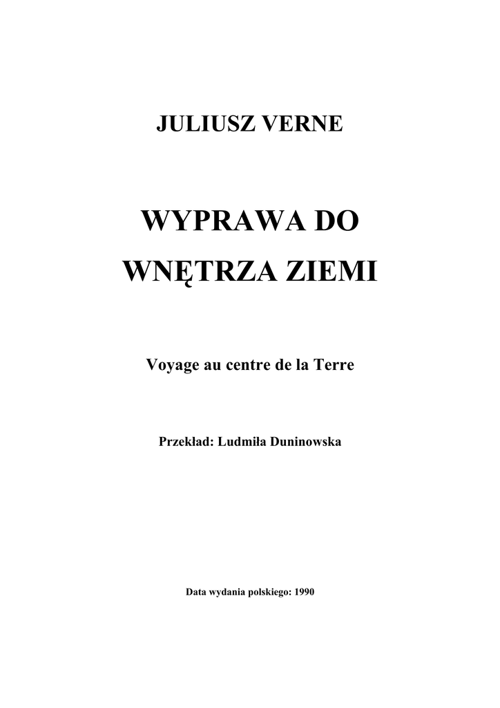 JULIUSZ VERNE WYPRAWA DO WNĘTRZA ZIEMI Voyage au centre de la Terre Przekład: Ludmiła Duninowska Data wydania polskiego: 1990 Rozdział I W niedzielę 24 maja 1863 roku wuj mój, profesor Lidenbrock, wrócił w wielkim pośpiechu do swego domu pod numerem 19 na Königsstrasse, jednej z najstarszych ulic wiekowej dzielnicy Hamburga. Służąca Marta była zapewne przekonana, że mocno spóźniła się z obiadem, który zaczynał dopiero perkotać na płycie kuchennej. „Ładna historia! – pomyślałem sobie. – Jeżeli wujaszek, najbardziej niecierpliwy człowiek, jakiego znam, jest głodny, narobi zaraz wielkiego krzyku!” – Jak to? – zawołała ze zdziwieniem Marta, uchylając drzwi od jadalnego pokoju. – Pan Lidenbrock już przyszedł? – Tak, Marto, ale na obiad jeszcze czas; nie ma drugiej, dopiero co wybiła pierwsza trzydzieści u Świętego Michała. – To dlaczego pan profesor wraca? – Zapewne zaraz nam to wyjaśni. – Oto on! Uciekam... Proszę mu tam przemówić do rozsądku, panie Akselu. I poczciwa Marta powróciła do swego kulinarnego laboratorium. Zostałem sam. Lecz przemówić do rozsądku temu najbardziej popędliwemu spośród profesorów – nie, na to nie mogłem się zdobyć przy moim trochę niezdecydowanym charakterze. Już-już zamierzałem wycofać się ostrożnie do swego pokoiku na górze, gdy skrzypnęły drzwi frontowe, odgłos zamaszystych kroków rozległ się na drewnianych schodach i pan domu, minąwszy szybko jadalnię, wpadł jak szalony do swego gabinetu. Ale w czasie tej krótkiej chwili cisnął w kąt laskę z ciężką, masywną gałką, na stół – szeroki, włochaty kapelusz, siostrzeńcowi zaś rozkazał donośnym głosem: – Chodź tu do mnie, Akselu! Nie zdążyłem ruszyć się z miejsca, a już profesor wołał, wyraźnie zniecierpliwiony: – No jak, jeszcze cię tu nie ma?! Pośpieszyłem do gabinetu mego groźnego opiekuna. Czuję się w obowiązku wyjaśnić, że Otto Lidenbrock bynajmniej nie był złym człowiekiem, ale jeżeli nie zajdą jakieś nieprzewidziane zmiany – co jest mało prawdopodobne – wuj mój pozostanie aż do śmierci niebywałym dziwakiem. Był profesorem tutejszego uniwersytetu, prowadził wykłady z mineralogii i na każdym przynajmniej ze dwa razy wpadał w okropną złość. Nie chodziło mu wcale o to, by słuchacze uczęszczali pilnie na jego wykłady, okazywali wielkie zainteresowanie przedmiotem i osiągali z czasem sukcesy na polu naukowym – nie przejmował się tego rodzaju drobiazgami. Wykładał „podmiotowo”, używając określenia filozofii niemieckiej, dla własnej satysfakcji, a nie z myślą o innych. Był to uczony należący do typu egoistów, studnia wiedzy, której kołowrót skrzypiał, kiedy chciało się coś z niej wydobyć, jednym słowem – skąpiec. Zdarzają się w Niemczech tacy profesorowie. Na nieszczęście wuj mój miał pewną trudność w wysławianiu się, co nie tyle dawało mu się we znaki w gronie najbliższych, ile wtedy, gdy występował publicznie. Trzeba przyznać, że była to nader przykra wada dla mówcy. W czasie wywodów w Johanneum profesor częstokroć zacinał się, staczał walkę z jakimś opornym słowem, które stawało mu sztorcem w gardle, jednym z owych słów, które potrafią sprzeciwiać się, pęcznieć i wydostają się wreszcie z ust jako przekleństwo – to znaczy w zgoła nienaukowej formie. I tu właśnie tkwił powód wybuchów złości mego wuja. W mineralogii istnieje mnóstwo nazw trudnych do wymówienia, surowych terminów, które raziłyby ucho poety. Nie chcę źle się wyrażać o tej gałęzi wiedzy, daleki jestem od tego. Lecz gdy stanie się oko w oko z krystalizacją romboidalną, z wulfenitem, tungstytem wolframowym lub tytanianem cyrkonu, nawet najbardziej wyćwiczony język może sprawić zawód. Otóż całe miasto wiedziało o tej skądinąd wybaczalnej wadzie wymowy wuja i wykorzystywano to, czyhano na krytyczne momenty jego wykładów, a wówczas wuj wpadał we wściekłość, audytorium natomiast zaśmiewało się, co było doprawdy bardzo niesmaczne i rażące. Jeśli słuchacze napływali tłumnie na wykłady Lidenbrocka, wielu spośród nich uczęszczało na nie pilnie głównie dlatego, aby ubawić się kosztem wybuchów złości profesora. Tak czy owak, wuja mego zaliczyć należało w poczet prawdziwych uczonych, co raz jeszcze pragnę podkreślić. Chociaż nieraz niszczył okazy manipulując nimi zbyt gwałtownie, obok talentu geologa posiadał też oko mineraloga. Gdy operował młotkiem, stalowym rylcem, namagnesowaną igłą, dmuchawką czy flaszką z kwasem, azotowym, był mistrzem w swoim zawodzie. Po przełamie, wyglądzie, twardości, topliwości, dźwięku, zapachu i smaku danego minerału potrafi określić bez wahania, do jakiej kategorii należy. Toteż nazwisko Lidenbrock wymawiano ze czcią w zakładach naukowych i krajowych towarzystwach geologicznych. Uczeni tej miary, co Humphry Davy, Humboldt i Sabinę, nie omieszkali złożyć mu swego uszanowania, gdy gościli przejazdem w Hamburgu. Becquerel, Ebelman, Brewster, Dumas, Milne-Edwards chętnie zasięgali jego rady co do najbardziej pasjonujących problemów z dziedziny fizyki i chemii. Ta gałąź wiedzy zawdzięczała mu niejedno doniosłe odkrycie, a w 1853 roku ukazały się w Lipsku „Problemy krystalografii” profesora Ottona Lidenbrocka, wielkie dzieło in folio z rycinami, które jednak przyniosło wydawcy znaczne straty materialne. Ponadto wuj miał w swojej pieczy, jako kustosz, muzeum mineralogiczne ambasadora rosyjskiego, pana Struve, cenne zbiory, głośne w całej Europie. Tak wyglądała z grubsza osobistość, która wzywała mnie tak niecierpliwie. Wyobraźcie sobie poza tym mężczyznę cieszącego się żelaznym zdrowiem, wysokiego i szczupłego, z jasną jak u młodzieńca czupryną, co ujmowało mu co najmniej dziesięć lat. Jego wielkie oczy biegały nieustannie za szkłami dużych okularów; nos, 