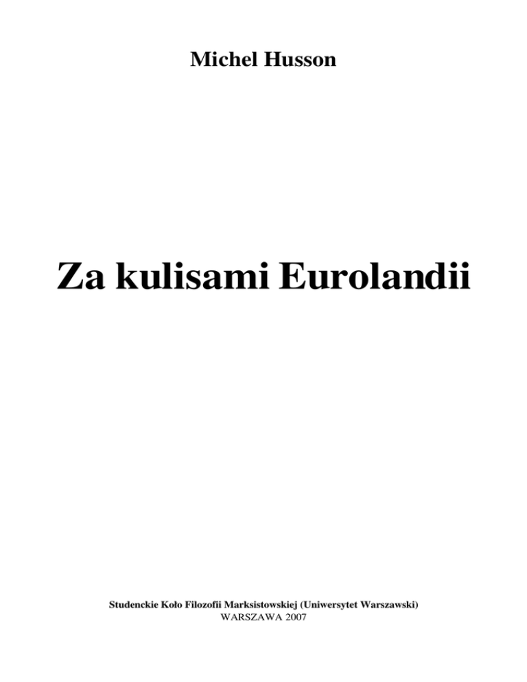 Michel Husson Za kulisami Eurolandii Studenckie Koło Filozofii Marksistowskiej (Uniwersytet Warszawski) WARSZAWA 2007 Michel Husson – Za kulisami Eurolandii (2001 rok) Artykuł Michela Hussona „Za kulisami Eurolandii” został napisany (prawdopodobnie) w 2001 roku. W języku polskim tekst ukazał się w „Nowym Tygodniku Popularnym” z 1 kwietnia 2001 roku. Niniejsze wydanie ma za podstawę pierwodruk. Tłumaczenie z języka francuskiego: Zbigniew Marcin Kowalewski. – 2 – © Studenckie Koło Filozofii Marksistowskiej (UW) www.skfmuw.w.pl Michel Husson – Za kulisami Eurolandii (2001 rok) Już wkrótce euro zastąpi całkowicie waluty państw członkowskich Europejskiej Unii Walutowej, popularnie zwanej Eurolandią. Im bliżej tej przełomowej chwili, tym potężniejsza staje się ofensywa ideologiczna – i tym bardziej prostacka. Albo jesteś za euro, Europą, nowoczesnością i postępem, albo wyłazi z ciebie archaiczny obrońca walut narodowych, a tym samym reakcyjnego dziś, pachnącego nacjonalizmem i ksenofobią, „suwerenizmu”. Jeśli chce się uniknąć tego rodzaju pułapki ideologicznej, warto wiedzieć, co kryje się – poza rozmaitymi manipulacjami – za wprowadzeniem jednolitej waluty europejskiej. Główna krytyka, jakiej z pozycji lewicowych można poddać realnie istniejącą budowę zjednoczonej Europy, polega na tym, że przystępując do niej zapomniano o fundamentach. W dziejach ludzkości wprowadzenie nowej waluty na danym obszarze było najczęściej ukoronowaniem jakiegoś procesu – czy to zjednoczenia kraju, czy też jego aneksji przez obce państwo. W przypadku euro zaczyna się natomiast od waluty i odkłada się na później to, czego ukoronowaniem powinno być jej wprowadzenie – trojaki problem europejskiego aparatu państwowego, gospodarczego ujednolicenia Europy i strukturyzacji kapitału. Dźwignia, ale czego? Taka była koncepcja, forsowana usilnie przez Jacques’a Delors, przewodniczącego Komisji Europejskiej w latach 19851994 – stwórzmy wspólną walutę, a spowoduje ona takie napięcia, że aby im podołać, nie będzie innego wyjścia: czy komuś będzie się to podobało, czy nie, trzeba będzie powołać do życia instytucje i określić model społeczny zjednoczonej Europy. Zgodnie z tym schematem, jednolita waluta miała być dźwignią integracji europejskiej. Rzeczywiście, euro posłużyło za dźwignię, tyle że za sprawą tej dźwigni kraje europejskie przyjęły powszechnie logikę elastyczności rynku pracy, niepewności warunków pracy i ostrego wzrostu zróżnicowania społecznego. Taka krytyka budowy zjednoczonej Europy nie ma nic wspólnego z próbami obrony dotychczasowych walut poszczególnych państw jako narzędzi suwerenności narodowej. Jeśli jako lewicowcy hołdujący walorom międzynarodowości stoimy na stanowisku, że „mamy w nosie granice państwowe”, to pociąga to oczywiście za sobą odmowę jakiejkolwiek fetyszyzacji walut narodowych, które są jedną z najbardziej materialnych oznak istnienia granic państwowych. Lecz taka odmowa nie oznacza z kolei, że jesteśmy zaślepieni i bijemy brawo unii walutowej – nie czynimy tego nie z przyczyn pryncypialnych, ale dlatego, że unia ta stoi na koślawych nogach. Zamrożenie kursów walutowych Z ogólnoekonomicznego punktu widzenia euro instytucjonalizuje zamrożenie kursów walut europejskich. Kursy te to narzędzie polityki gospodarczej, z którego państwa Eurolandii postanowiły raz na zawsze zrezygnować. Manipulowanie kursami walut służyło dopasowywaniu różnych rzeczywistości gospodarczych pod kątem koniunktury i inflacji. Nie będzie to już możliwe, szkopuł jednak w tym, że rezygnacja z takiego narzędzia jest nader problematyczna. Oto wyobraźmy sobie, że stopy inflacji zaczynają się różnicować – co zresztą właśnie się dzieje. Jedynym lekarstwem dla krajów, w których inflacja jest za wysoka, w obliczu spadku konkurencyjności będzie wyhamowanie wzrostu gospodarczego. Do głosu dojdzie wówczas tendencja polegająca na równaniu do (wielkich) krajów o niskiej inflacji i miernym wzroście gospodarczym. Aby mogło być inaczej, należałoby założyć, że dynamiki gospodarcze poszczególnych krajów są ze sobą doskonale zintegrowane, a tak oczywiście nie jest – i daleka do tego droga. – 3 – © Studenckie Koło Filozofii Marksistowskiej (UW) www.skfmuw.w.pl Michel Husson – Za kulisami Eurolandii (2001 rok) Ktoś powie, że w obrębie poszczególnych krajów też występują międzyregionalne różnice wzrostu, a ponadto w stosunkach między regionami istnieją deficyty handlowe, i że właśnie istnienie jednolitej waluty narodowej pozwala na płynność. To prawda, ale jest to porównanie nieuprawnione, bo niepełne – w każdym kraju istnieje też budżet i istnieją układy instytucjonalne, które zapewniają konieczne transfery zasobów z jednego regionu do innego. Z niczym takim nie mamy do czynienia w zjednoczonej Europie – a jeśli już mamy, to na bardzo ograniczoną skalę, którą zgodnie z neoliberalną zasadą maksymalnej redukcji zaangażowania państwa usiłuje się jeszcze bardziej ograniczyć (np. fundusze strukturalne). Euro a płace Jedną z korzyści płynących z euro będzie to, że konsumenci będą mogli porównywać ceny, a pracownicy – płace, głoszą tuby propagandowe Eurolandii. Ten argument to dobry przykład głupstw, którymi będzie się nas faszerować – to tak, jakby mieszkańcy rejonów przygranicznych musieli czekać na euro, aby przekonać się, że najlepiej być pracownikiem najemnym w Niemczech i Luksemburgu, a zakupy robić we Francji! Argument ten jednak jest o tyle ciekawy, że wsadza palec w jedną z ziejących przy budowie zjednoczonej Europy dziur – otóż integracja europejska nie przewiduje wprowadzenia żadnej reguły, która dotyczyłaby ewolucji płac. Jedyna racjonalna i zgodna z zasadą kooperacji reguła brzmiałaby: płace wzrastają w ta