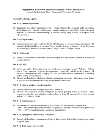 Regulamin deskorolka - Jarmark Podhalański w Nowym Targu