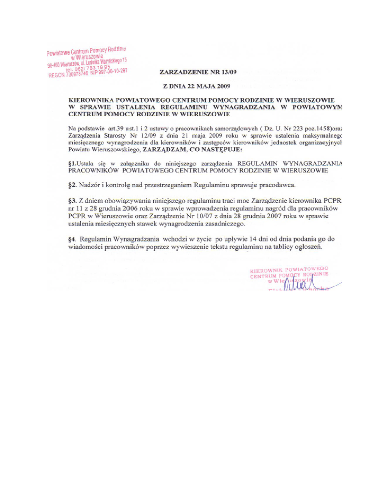 Regulamin wynagradzania pracowników PCPR