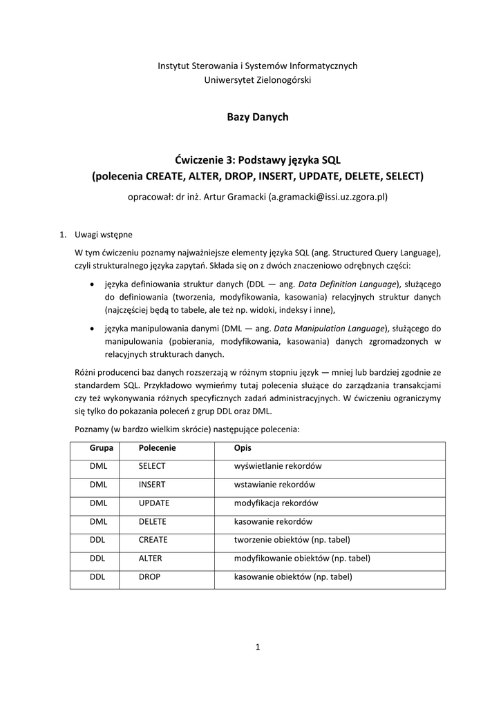 Podstawy języka SQL - Uniwersytet Zielonogórski