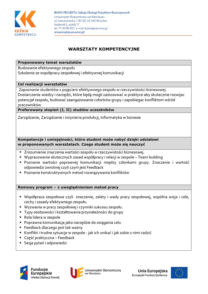 WARSZTATY KOMPETENCYJNE Budowanie efektywnego zespołu