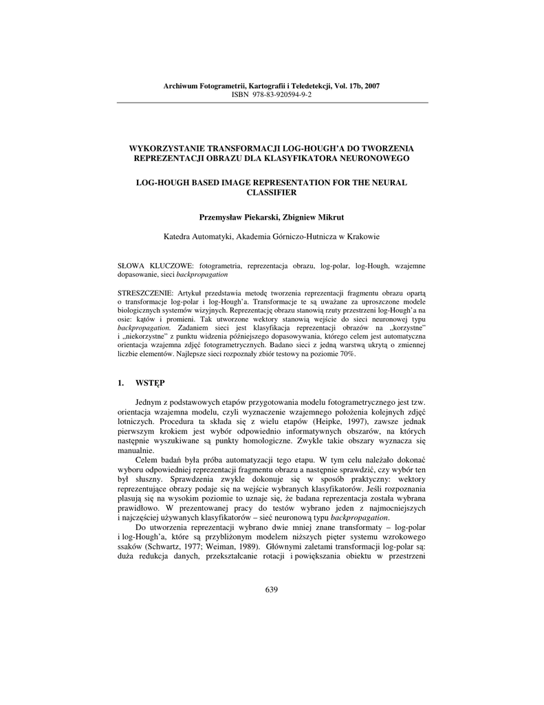 Piekarski P., Mikrut Z. Wykorzystanie transformacji log