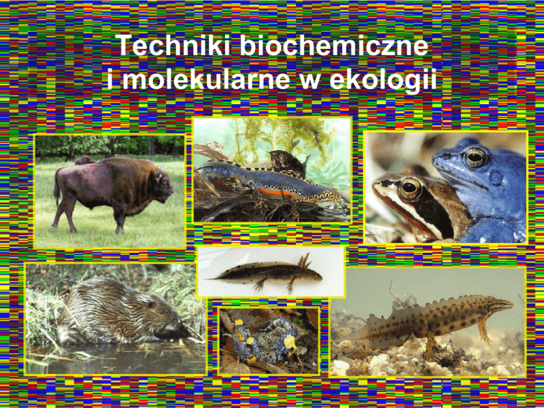 Techniki biochemiczne i molekularne w ekologii Część slajdów jest autorstwa prof. Mirosława Ratkiewicza z Uniwersytetu w Białymstoku któremu składam SERDECZNE PODZIĘKOWANIA za pozwolenie na wykorzystanie jego slajdów Wykład 15 godzin: 5 x 3 godziny lekcyjne zaliczenie: test pisemny (wyboru) 60% końcowej oceny Ćwiczenia 15 godzin, dwie grupy: 5 x 3 godziny lekcyjne zaliczenie: kolokwium pisemne 40% końcowej oceny 3 x laboratorium molekularne 2 x laboratorium komputerowe www: http://www.eko.uj.edu.pl/molecol/ -> Dla studentów -> Biochemiczne i molekularne metody… Podręczniki • • • • • Avise: Markery molekularne, historia naturalna i ewolucja. WUW 2008 Freeland: Ekologia molekularna. PWN 2008 Futuyma: Ewolucja. WUW 2008 Brown: Genomy. PWN 2009 Hall: Łatwe drzewa filogenetyczne. WUW 2008 Wykłady • Ekologia molekularna: integracja ekologii, biologii ewolucyjnej i biologii molekularnej • Czym są markery molekularne? • Dlaczego markery molekularne są ważne w badaniach ekologicznych i ewolucyjnych? • Najważniejsze techniki molekularne • Zastosowanie technik molekularnych do rozwiązywania problemów badawczych/uzyskiwania informacji niedostępnych w inny sposób Ekologia molekularna • zastosowanie metod genetyki molekularnej do rozwiązywania problemów badawczych z zakresu ekologii, biologii ewolucyjnej, konserwatorskiej i ekologii behawioralnej • termin pojawia się na początku lat 90tych XX w. • niektóre techniki stosowano od połowy lat 60tych • jej szybki rozwój dzięki opracowaniu różnorodnych markerów molekularnych opartych na DNA • nie jest prostym zastosowaniem technik molekularnych do „starych” problemów ekologicznych Ekologia molekularna Zagadnienia możliwe do badania wyłącznie lub przede wszystkim technikami molekularnymi: • analizy rodzicielstwa i pokrewieństwa • identyfikacja osobników • metody nieinwazyjne i ślady biologiczne • śledzenie historii populacji i gatunków niezróżnicowanych morfologicznie • badania genetyczne wymarłych gatunków • przybliżone lecz bardzo szybkie i uniwersalne metody oceny bioróżnorodności we wszystkich skalach Ekologia molekularna jest ściśle powiązana z teorią ewolucji Dane molekularne pozwoliły na testowanie kluczowych aspektów Syntetycznej Teorii Ewolucji (Nowoczesnej Syntezy) Przewidywania wyprowadzone z syntetycznej teorii ewolucji stanowią podstawę wnioskowania o procesach ekologicznych z danych molekularnych • teoria mutacji neutralnych • zegary molekularne • genetyka populacji • koalescencja • genomika Dlaczego techniki biologii molekularnej stosuje się w ekologii? • analizuje się cechy dziedziczne, unika się badania cech które wykazują znaczną plastyczność fenotypową • są uniwersalne – od wirusów do człowieka • dostarczają zazwyczaj dokładniejszych wyników niż tradycyjne metody i trwają znacznie krócej • możliwa jest identyfikacja genów odpowiedzialnych za obserwowane cechy i zjawiska – podstawy genetyczne procesów ekologicznych i ewolucyjnych • techniki analizy DNA wymagają śladowych ilości materiału biologicznego – mogą być nieinwazyjne i niedestrukcyjne Czym są i do czego służą markery molekularne? Wykazujące zmienność, dziedziczne cechy DNA, RNA lub białek użyteczne w identyfikacji: • pozycji w obrębie genomu (mapy genetyczne) • komórek i tkanek (np. nowotworowych) • osobników (analizy rodzicielstwa, medycyna sądowa) • populacji • gatunków • jednostek ewolucyjnych wyższego rzędu A przez to pozwalające wnioskować o przebiegu procesów ekologicznych i ewolucyjnych Czym są i do czego służą markery molekularne? Markery molekularne pozwalają na uzyskanie różnorodnych informacji biologicznych na temat: • systemów kojarzeń organizmów • kierunków i wzorców migracji • centrów różnorodności genetycznej gatunków • bioróżnorodności (mikro)organizmów • adaptacji na poziomie molekularnym Wiele typów markerów molekularnych Wybór markerów molekularnych Sposób dziedziczenia Po obu rodzicach: • zlokalizowane na autosomach Po jednym z rodziców: • na chromosomach płci chromosom W u ptaków tylko po samicach chromosom Y u ssaków tylko po samcach • w organellach mitochondria u zwierząt dziedziczą się po matce, niektórych roślin po ojcu chloroplasty zazwyczaj dziedziczą się po matce Wybór markerów molekularnych Tempo ewolucji W zależności od badanego problemu przydatne będą markery ewoluujące szybko: • identyfikacja osobników • analiza pokrewieństwa w grupach rodzinnych i populacjach • migracje (przepływ genów) między populacjami W średnim tempie: • historia określonego gatunku • identyfikacja jednostek zasługujących na ochronę • szybka ocena bioróżnorodności (kody kreskowe DNA) Wolno: • pokrewieństwa ewolucyjne większych grup • ewolucja genomów i cech Wybór markerów molekularnych Kodominacja i dominacja Marker kodominujący to taki, dla którego można określić pełny genotyp osobnika – np. rozróżnić heterozygotę od homozygoty Bardzo użyteczne lecz trudniejsze do uzyskania niż dominujące Marker dominujący to taki, w którym występowanie jednego allelu maskuje inne Łatwo dostępne, można badając jednocześnie bardzo wiele markerów lecz nie dostarczają tak szczegółowych informacji. Słabo rozwinięte metody analizy Wybór markerów molekularnych Możliwości techniczne, koszt, moda RAPD AFLP sekwencjonowanie RFLP Popularność SNP allozymy minisatelity mikrosatelity Schlotterer 2004 Wybór markerów molekularnych Możliwości techniczne, koszt, moda Seeb et al. 2011 Elektroforeza białek – Allozymy, Izozymy Białka o różnym ładunku będą się przemieszczać w żelu w polu elektrycznym z różną prędkością. Pierwsza technika biochemiczna szeroko stosowana w genetyce populacji: Drosophila pseudoobscura (Lewontin i Hubby 1966); człowiek (Harris 1966) CC AB BB AA + -