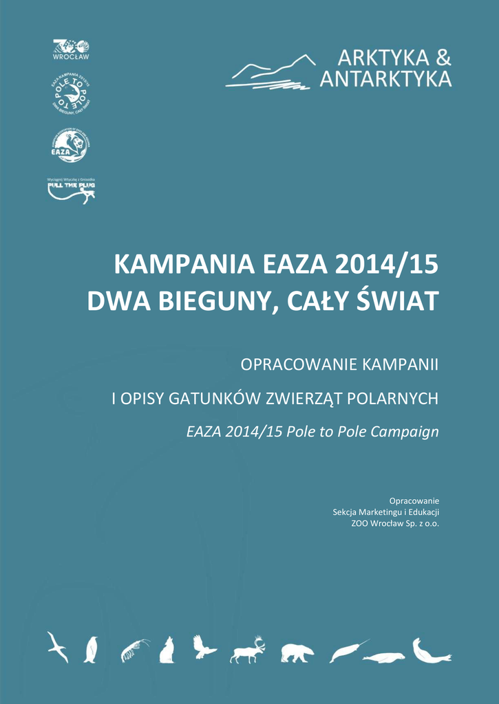 KAMPANIA EAZA 2014/15 DWA BIEGUNY, CAŁY ŚWIAT OPRACOWANIE KAMPANII I OPISY GATUNKÓW ZWIERZĄT POLARNYCH EAZA 2014/15 Pole to Pole Campaign Opracowanie Sekcja Marketingu i Edukacji ZOO Wrocław Sp. z o.o. 1|Strona PODEJMIJ WYZWANIE I WYCIĄGNIJ WTYCZKĘ Z GNIAZDKA! Przyłącz się do kampanii Dwa Bieguny, Cały Świat. www.poletopolecampaign.org Podejmij wyzwanie i wyciągnij wtyczkę z gniazdka! 2|Strona PODEJMIJ WYZWANIE I WYCIĄGNIJ WTYCZKĘ Z GNIAZDKA! I. Wstęp Obecna kampania dotyczy biegunów oraz wspaniałych i różnorodnych gatunków zwierząt, które tam żyją, a także zagrożeń, którym muszą stawić czoło. Kierujemy ją do każdego, gdyż liczy się ilość. Drobne gesty w życiu codziennym zebrane razem, mogą wywrzeć olbrzymi wpływ na ochronę zwierząt żyjących na obszarach polarnych. Głównym organizatorem tegorocznej kampanii, podobnie jak poprzednich, jest EAZA (Europejskie Stowarzyszenie Ogrodów Zoologicznych i Akwariów). Kampanię wspierają: 1. 2. 3. 4. 5. 6. 7. AAT (Arctic Action Team), ASOC (Antarctic and Southern Ocean Alliance), AZA (The Association of Zoos and Aquariums), IUCN Climate Change SSC, Myactions.org, PBI (Polar Bears International), Environmental Psychology Group RUG (Groningen University). 1. Bohaterowie kampanii Gatunkami flagowymi kampanii zostały: niedźwiedź polarny i pingwin cesarski. To ambasadorzy pozostałych gatunków zwierząt występujących w Arktyce i Antarktyce. Szczególnie niedźwiedzie polarne powinny nas inspirować do codziennego podejmowania drobnych kroków, które składać się będą na wspólny wysiłek ratowania tego gatunku i jego siedliska. (Fot. Gaby Schammer) Arktyka - kraina niedźwiedzia polarnego Niedźwiedzie polarne są symbolem wyzwań stawianych ochronie gatunkowej, ponieważ ich środowisko, jak nigdzie indziej na świecie, szczególnie dotknięte jest skutkami zmieniającego się klimatu. Lód morski potrzebny niedźwiedziom do polowań dramatycznie się kurczy. Konsekwencją jest zwiększający się akwen otwartej wody i dystans pomiędzy lądem a płytami kry lodowej. Choć niedźwiedzie polarne są świetnymi pływakami, to powoduje to liczne ich utonięcia. Do innych zagrożeń należą też liczne konflikty pomiędzy niedźwiedziami a ludźmi. Niedźwiedzie polarne są poważnie zagrożone wyginięciem, nie ma co do tego wątpliwości. Zgadzają się z tym naukowcy, którzy twierdzą, że jeśli sytuacja niedźwiedzi nie ulegnie poprawie, gatunek ten wymrze na swoim obszarze w ciągu najbliższych 50 lat. 3|Strona PODEJMIJ WYZWANIE I WYCIĄGNIJ WTYCZKĘ Z GNIAZDKA! (Fot. Daniel J. Cox/Natural Exposure) Zasoby naszej planety są ograniczone. Im bardziej ludzie je wykorzystują i naruszają ekosystemy, od których zależne są dzikie zwierzęta, tym więcej gatunków ubywa, zarówno ilościowo, jak i pod względem różnorodności gatunkowej. Jedynie wiedza, jak utrzymać to co jeszcze posiadamy, pomoże nam zmniejszyć negatywny wpływ, jaki wywieramy na przyrodę. (Dr. Ian Stirling) Niedźwiedzie polarne występują wokół Bieguna Północnego i wciąż zasiedlają większość ze swoich pierwotnych terenów. W 2009 roku grupa specjalistów zajmującą się niedźwiedziami polarnymi przy IUCNie (Międzynarodowa Unia Ochrony Przyrody) oszacowała liczebność tego gatunku na ponad 20000 osobników. Niedźwiedzie polarne są dużymi drapieżnikami wyspecjalizowanymi w polowaniu na foki. Aby skutecznie polować muszą mieć stały dostęp do dużych obszarów kry morskiej, wśród której wędrują w poszukiwaniu ofiary. Zasięg ich terytorium liczony jest w kliku tysiącach kilometrów kwadratowych. Jeden niedźwiedź, aby przeżyć musi zjeść średnio w ciągu roku 43 foki obrączkowane (nerpy) lub ich równowartość. Tak więc, cała populacja w ciągu roku, aby przetrwać potrzebuje ponad miliona fok. Niedźwiedziom polarnym zdarza się też, od czasu do czasu, żerować na martwych wielorybach lub morsach wyrzuconych na brzeg. Ten rodzaj pożywienia wystarcza zaledwie dla kilku niedźwiedzi przez parę dni, głównie dlatego, że trudno jest przewidzieć pojawienie się padliny. Jeśli uda nam się wystarczająco schłodzić planetę, to zachowamy morski ekosystem polarny dla kolejnych pokoleń, które będzie mogło cieszyć się obecności niedźwiedzi polarnych i pingwinów cesarskich w środowisku naturalnym. Ciągle jest to możliwe, ale nie można marnować czasu. (Dr. Ian Stirling) W ciągu tysięcy lat niedźwiedzie polarne przeszły ewolucję od zwierząt lądowych, do przystosowanych do życia na lodzie. Tego procesu nie można odwrócić zaledwie przez kilka pokoleń. Niedźwiedź polarny musiałby, tak jak jego kuzyni, powrócić do diety opartej na jajach, jagodach i innych roślinach. Z powodu olbrzymiej masy ciała ten rodzaj pokarmu nie zapewni mu wystarczającej ilości energii potrzebnej do przeżycia. Jego organizm potrzebuje większej ilość pożywienia, które pokryje jego zapotrzebowanie energetyczne. Taki pokarm niedźwiedź polarny znajduje polując pośród kry. 4|Strona PODEJMIJ WYZWANIE I WYCIĄGNIJ WTYCZKĘ Z GNIAZDKA! (Pingwin cesarski, Fotolia) Antarktyka - królestwo pingwina cesarskiego Negatywny wpływ zmian klimatycznych na Antarktykę i jego mieszkańców jest ewidentny. Półwysep Antarktyczny leżący w zachodniej części Antarktydy ociepla się najszybciej na Ziemi. Oddziałuje to dramatycznie na gatunki tam występujące. W skali globalnej rokowania także są złe. Jeśli stopi się cały lód Antarktyki, to poziom mórz podniesie się o około 60 metrów. Co więcej, pokrywy lodowe odpowiadają za wymianę ciepła, pary wodnej i gazów pomiędzy atmosferą a oceanami. Zmiany w tym systemie będą miały niekorzystny wpływ na klimat całej planety. Najbardziej odczują to gatunki zależne od obecności lodu morskiego. Malutki kryl antarktyczny (Euphausia superba) żeruje najczęściej na mikroskopijnych algach, które znikają wraz z topnieni