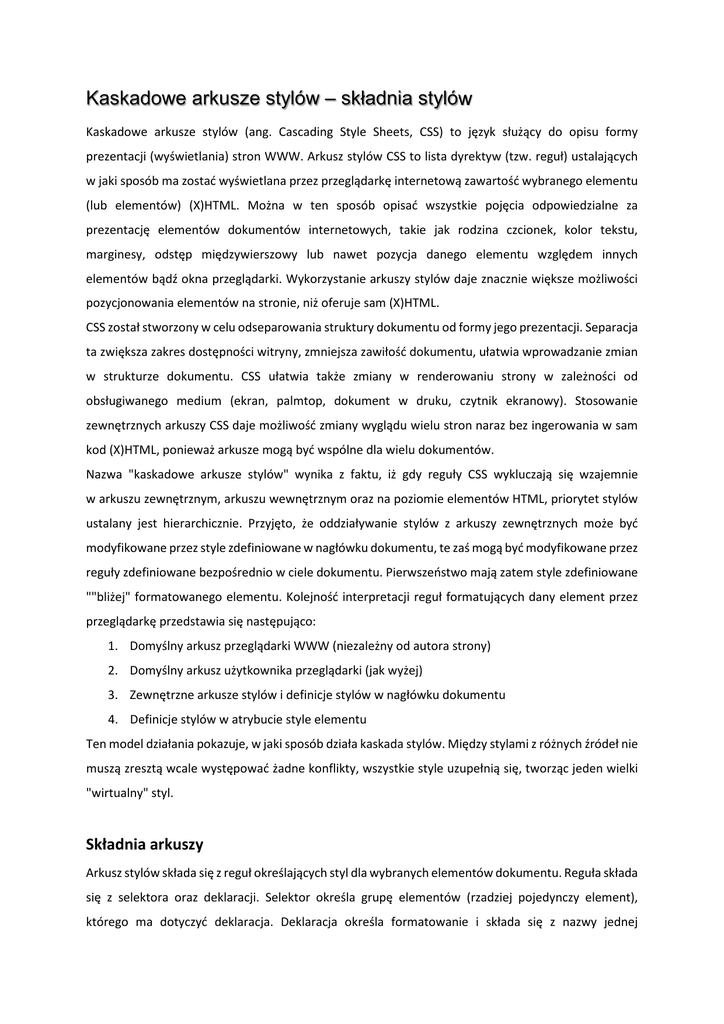 ustalany jest hierarchicznie. Przyjęto, że oddziaływanie stylów z arkuszy zewnętrznych może być