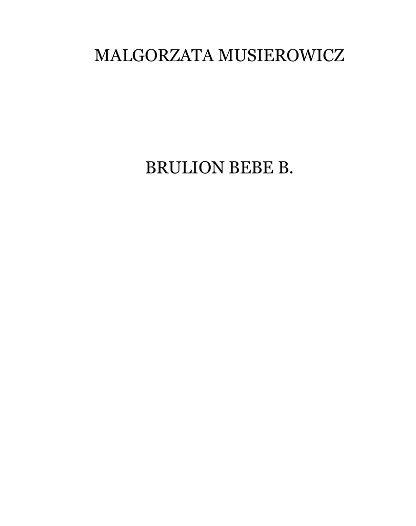 MALGORZATA MUSIEROWICZ BRULION BEBE B. Często mnie zdumiewa, jak zawiłe są linie kreślone palcem Przypadku i jak bardzo losy nasze zależą od tych poplątanych bazgrołów. Gdyby na przykład ulica Armii Czerwonej nie była w sierpniu rozkopana do imentu, Bebe i Dambo nie spotkaliby się koło fontanny. Zapewne spotkaliby się nieco później, w innym punkcie miasta, ale kto wie, czy wtedy zwróciliby na siebie uwagę? Gdyby ulica Armii Czerwonej, ta smrodliwa arteria w centrum Poznania, nie była rozkopana, samochód nysa, który zabrał zakurzonego autostopowicza pod Kluczborkiem, nie byłby zmuszony zatrzymać się w Poznaniu akurat na Placu Młodej Gwardii. Natomiast ciężarówka, wioząca Bebe Bitner wraz z grupą młodzieży wprost z Mazur, dotarłaby z pewnością dalej niż do Placu Wiosny Ludów. Ale Armii Czerwonej. była rozkopana na całej długości. Przed samym Domem Partii (róg Kościuszki) dziwaczny silnik dygotał z rykiem w swej brudnożółtej obudowie, a kopczyki gliniastej (na oko nieurodzajnej) ziemi znaczyły linię zagadkowego rowu. Wobec oczywistego faktu, że żaden pojazd nie potrafi się poruszać po torach zasypanych gliną i brukowcami, kursowanie tramwajów ulicą Armii Czerwonej zostało - po dyskusjach i naradach - okresowo wstrzymane. Po obu stronach rozrytej jezdni chodniki wypełnione były drepczącą ciżbą, ale zarówno zakurzony autostopowicz, jak dziewczyna znaleźli się akurat po tej samej stronie. On szedł jakieś pięćdziesiąt metrów przed nią. Oboje byli w dżinsach, oboje z plecakami, oboje przybrudzeni i mocno zgrzani, z tym że ona nieco bardziej niż on. Bebe miała za sobą dłuższą trasę. Po wielogodzinnej podróży musiała teraz, z pełnym obciążeniem, przebyć całą długość piekielnej ulicy - w skwarze, w zaduchu beztleńowym, w posępnej rzece ludzkich istot, z których każda była spocona, a niemal każda taszczyła jakiś tobół (zjawisko charakterystyczne dla czasów kryzysu, przełomu, rozpadu i rozkładu, jak też wciąż nowych wstrząsów społecznych). Bebe dźwigała plecak na aluminiowym stelażu z doczepioną menażką i wciśniętym pod klapę zawiniątkiem zawierającym śpiwór, z rulonem z karimatki i z dyndającymi po obu stronach pionierkami. Damazy - tak miał na imię autostopowicz - któ ry o spory kawałek drogi przed nią przeciskał się przez współciżbę współobywateli, miał bagaż podobny, tyle że spod klapy plecaka wystawały mu wędki w brezentowym pokrowcu. W chwili gdy on skręcał pod starą wierzbę płaczącą, minąwszy pomnik Czerwca 56 oraz STAtuę Mickiewicza, Bebe osiągała dopiero początek najgorszego odcinka trasy, wkraczając w zgęszczony zaduch przed Pałacem Kultury. Mniej więcej w tym samym miejscu, co uprzednio Damazemu, przyszło jej do głowy, że z placu mogłaby sobie skręcić w oazę zieleni, w skupisko starych drzew, które, o ile nic się nie zmieniło w tych nerwowych czasach, zapewne się parają fotosyntezą. Tam będzie mogła usiąść na trawie i zdjąć wreszcie z biednych pleców ten przeklęty stelaż. Przecięła plac, pokryty gorącą łuską granitu, spojrzała z uczuciem na Mickiewicza (patrzał spod ciężkich powiek kamiennym posępnym wzrokiem, jakby to, co widział, poważnie go niepokoiło) - i dała nura pod prześwietloną kopułę wielkiej wierzby płaczącej, której gałązki zwisały aż do ziemi. Jeszcze kawałek - i już aleja starych platanów pospieszyła ku niej ze swym ożywionym szumem pełnym ruchliwych cieni. Bebe poczuła, że z wolna odżywa. O niczym bardziej nie marzyła w tym momencie niżo kąpieli. Trzeba jednak zaznaczyć, że ani kurz, który ją powlekał, ani pot rzęsisty, ani pielgrzymie, wyszarzałe dżinsy, ani wysłużony podkoszulek - nic nie zdołało całkowicie ukryć jej niewątpliwej, promiennej urody. Na prawo, ujęty z trzech stron podwójną ramą platanów, wielki trawnik pochylał się ku Operze. Już na nim leżało parę osób - a koce, termosy, torby plażowe i piłki błyszczały wśród zieleni jaskrawymi plamami kolorów. Bebe stanęła pośrodku trawnika, zdjęła plecak i padła. Trawnik, uformowany w rozległą podkowę, otaczał płytką, regularnego kształtu sadzawkę o betonowym dnie i obrzeżeniu z kamienia. Pośrodku sadzawki biła fontanna, ze świstem-i pluskiem wznosząc swe zimne pióropusze na tle kolumn, schodów i kamiennych rzeźb Opery. Bebe pomyślała, że ma na pewno bąble na plecach, a już z pewnością - na piętach; zdrowy rozsądek nakazywałby teraz zdjąć trampki, wyrzucić skarpetki i wleźć do sadzawki przynajmniej po kolana. Ale szaleństwa, choćby nawet i nakazywane przez zdrowy rozsądek, były dla Bebe Bitner czymś niewykonalnym. Mogła tylko z zazdrością przyglądać się nieskrępowanym poczynaniom tych, co zwykli ulegać swym zachciankom. W ten oto sposób jej wzrok odszukał Damazego, który od pewnego już czasu stał w wodzie po kolana, nie zdjąwszy nawet plecaka i wystawiał szeroki uśmiech pod ożywczą mgłę kropelek. Damazy wyglądał na miłego włóczykija i wzrok Bebe przylgnął do niego na dobre. ten chłopak był jakiś niezwykły, choć nie z powierzchowności bynajmniej. Długi, kościsty i muskularny, był - jak to blondyn - spalony na kolor czerwonomiedziany. Jego nos przypominał zdeformowaną gruszkę, a uszy były wyjątkowo dorodne. Wtrącę tu przy okazji, że w szkole podstawowej nazwano go Dambo i od tej pory nikt już nigdy nie zwracał się do niego ina czej, gdyż nawet w tych ciężkich czasach wszyscy jakimś cudem zdołaliśmy się zapoznać z większością nieśmiertelnych arcydzieł Walta Disneya. A Damazy czymś słonika Dumbo przypominał, czymś jeszcze oprócz uszu. Miał z niego coś w oczach: otwartą, czułą ufność. No, dobrze. Dambo stał pod fontanną, Bebe siedziała zgrabnie na trawniku tuż przed kamiennym parapetem sadzawki. On trzymał tenisówki w rozpostartych rękach, a ona przygląda
